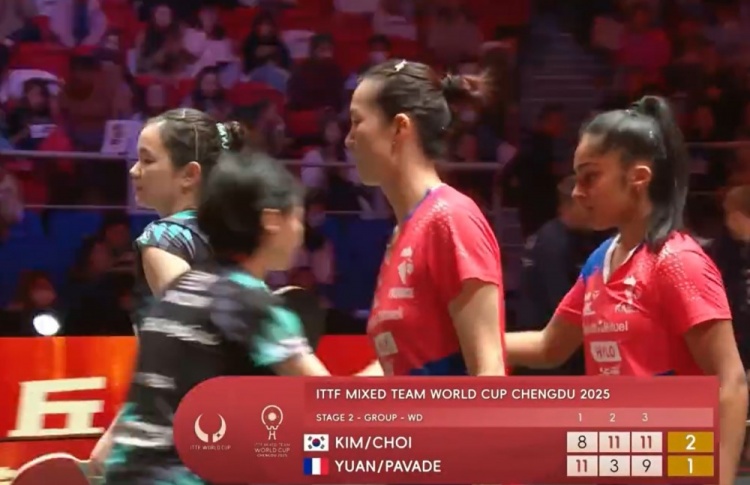 本场比赛双方打到最后一盘的最后一局球,最终金娜英/崔孝珠击败袁嘉楠/帕瓦德,为韩国队取得胜利。