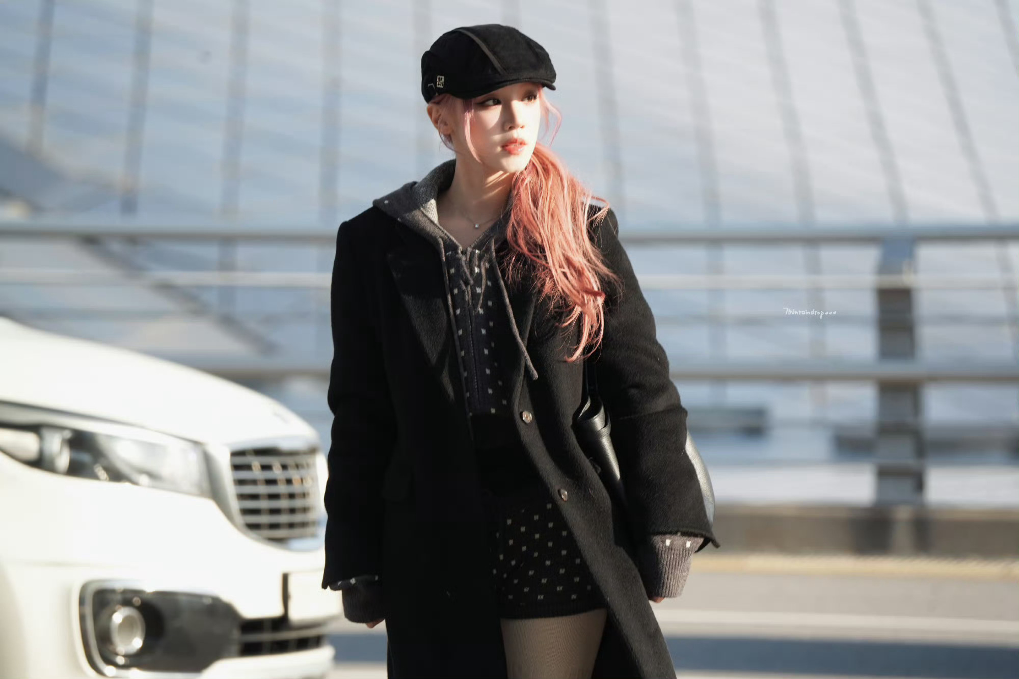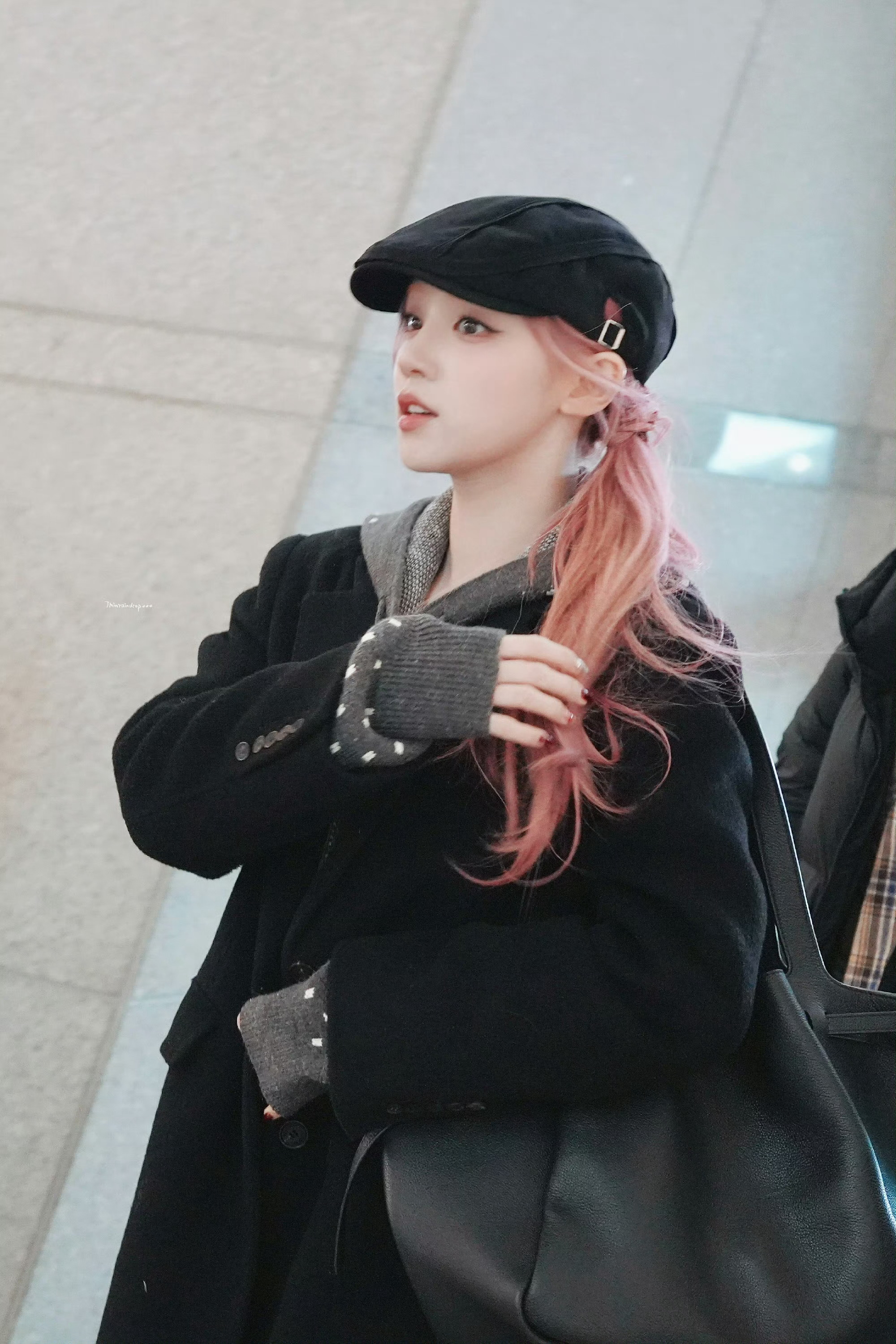 宋雨琦粉发低马尾机场宋雨琦今日份机场路透粉发低马尾+大衣氛围感十足!元气满满的韩