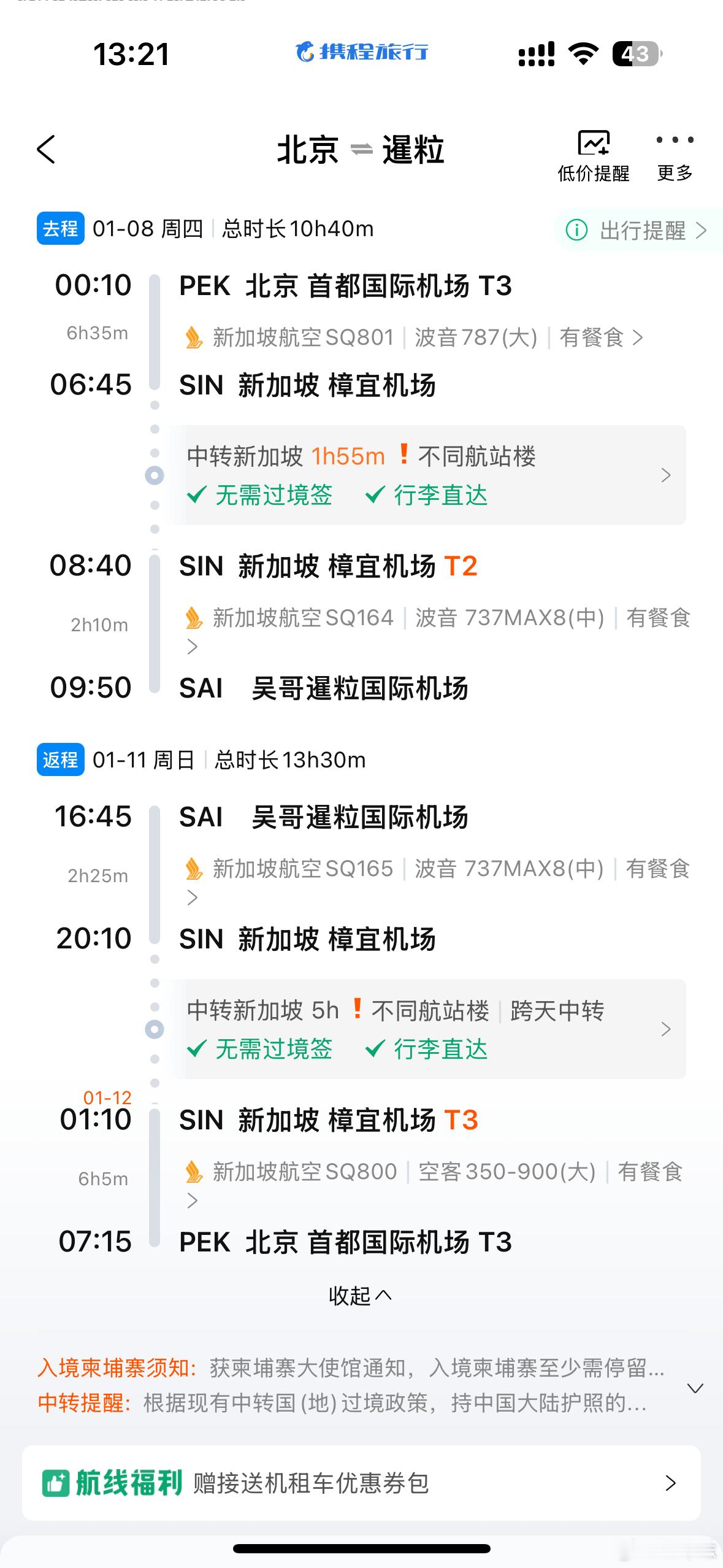 柬埔寨免签 赶紧查了一下机票,北京飞暹粒,新航往返才4000多,贼便宜。就是得在新加坡转机等好几个小时,好在不用办过境签。最近身边好多做服装的朋友把国内的工厂搬到了柬埔寨,明年暑期有必要安排去考察一次了柬埔寨免签