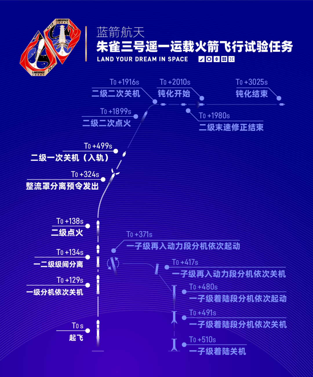 一个月后,可重复使用的朱雀三号立项。一年后,朱雀三号完成垂直起降回收十公里飞行试验——这是实现回收复用关键节点之一。