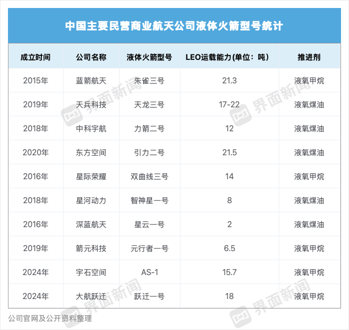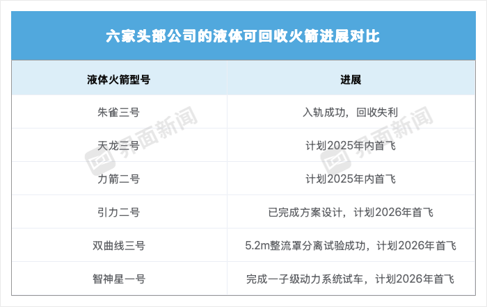 当前已实现入轨级发射的六家中国商业火箭公司,被业内称为民营火箭“六小强”,它们均已布局液体火箭。