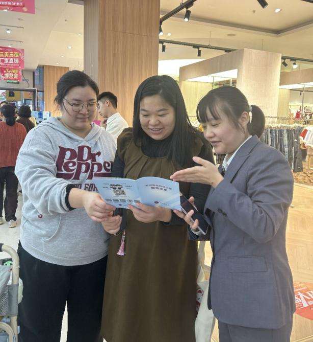 博览会现场人潮涌动,大量正处于家庭成长关键阶段的年轻父母汇集于此。广发银行株洲支行精准把握这一群体对家庭资产安全与未来规划的高度关注,精心设置消保宣传展台,银行工作人员通过发放通俗易懂的宣传折页、宣讲电诈案例,吸引众多家长驻足观看和咨询。