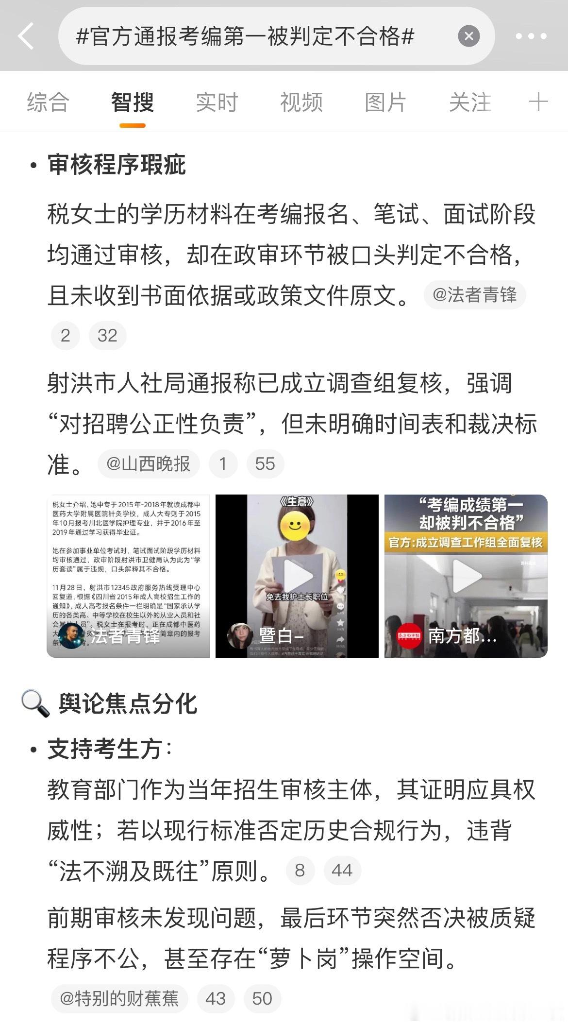 官方通报考编第一被判定不合格官方通报考编第一被判定不合格。 热点现场