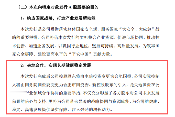 根据公告披露:“此次辰安科技新引入合肥国投为控股股东,是央地国资在公共安全产业领域合作协同的重要举措,将为公司带来显著的战略协同与资源赋能。”