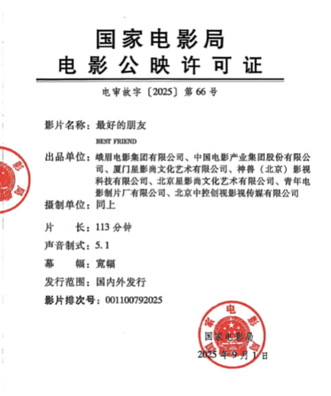 影讯 12.05最好的朋友 影片信息(8点上片)国 别:中国类 型:剧情、青春片 长:113分钟幕 幅:宽银幕声 制:5.1语 别:国语发行版本:数字2D放映期限:2025年12月05日 08:00 - 2026年01月05日