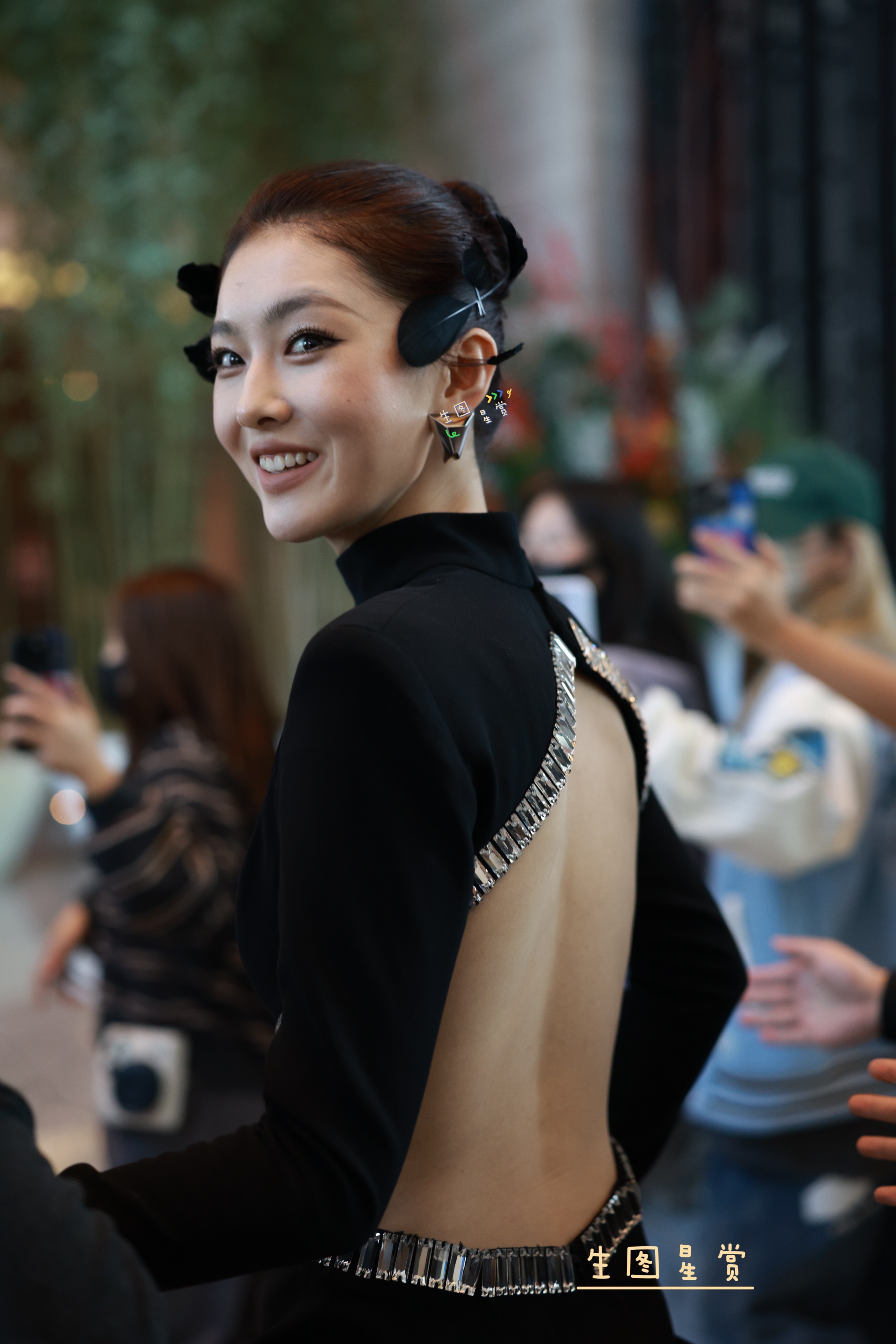 孙芊浔剧查查之夜上班妆发别致,大秀美背