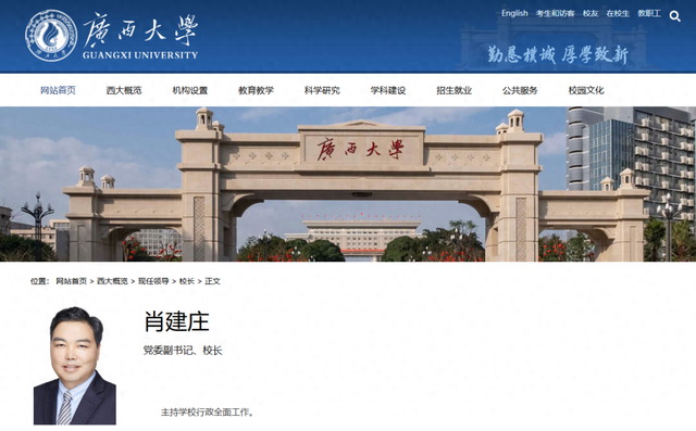 记者从广西大学官网获悉,肖建庄已任广西大学党委副书记、校长,主持学校行政全面工作。