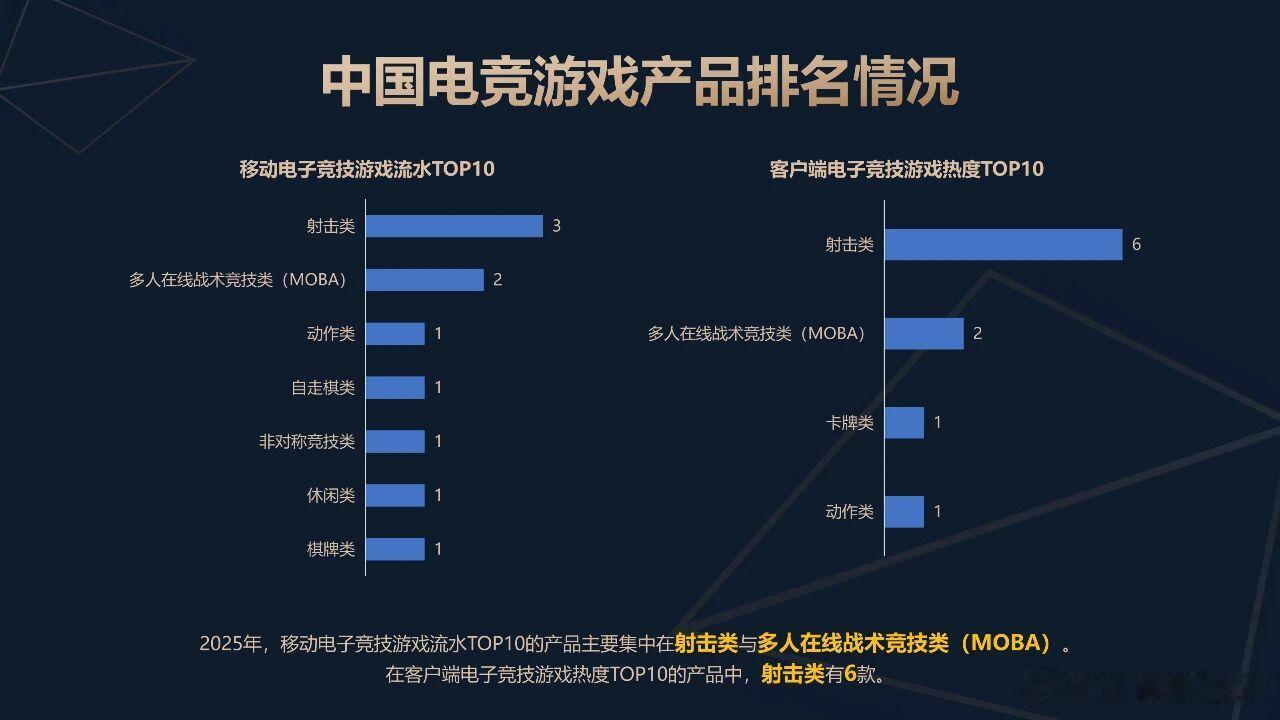 2025中国电子竞技产业报告发布啦!产业收入、用户规模双增长,确实感觉周围搞竞的小伙伴越来越多了。游戏类型中射击产品占比最高,MOBA和体育类游戏紧随其后。按平台分类,移动游戏占比58.6%,手机玩游戏确实方便,端游占25.3%,同时具有两种版本的电竞游戏占比12.1%,网游占4.0%。大家最近什么游戏🎮玩得最多?2025中国电子竞技产业报告发布ACG优创官