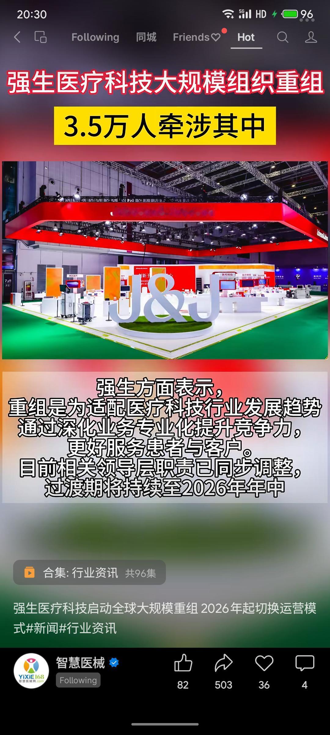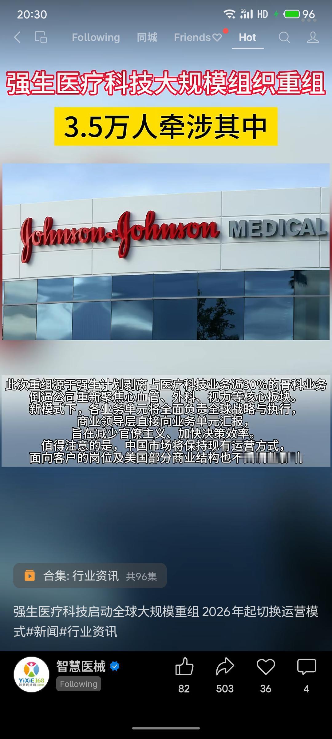 强生医疗科技宣布启动全球大规模组织重组,涉及约3.5万名员工。公司计划剥离近30%的骨科业务,以聚焦心血管、外科等核心板块。运营模式将从2026年起由区域主导转向业务单元主导,旨在提升决策效率与竞争力。中国市场运营方式及部分面向客户的岗位暂不受影响,过渡期将持续至2026年年中。
