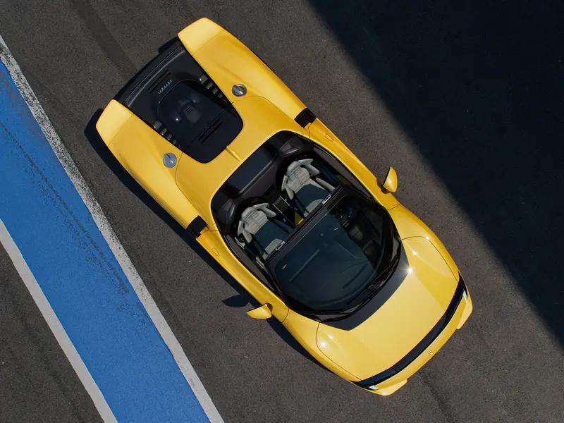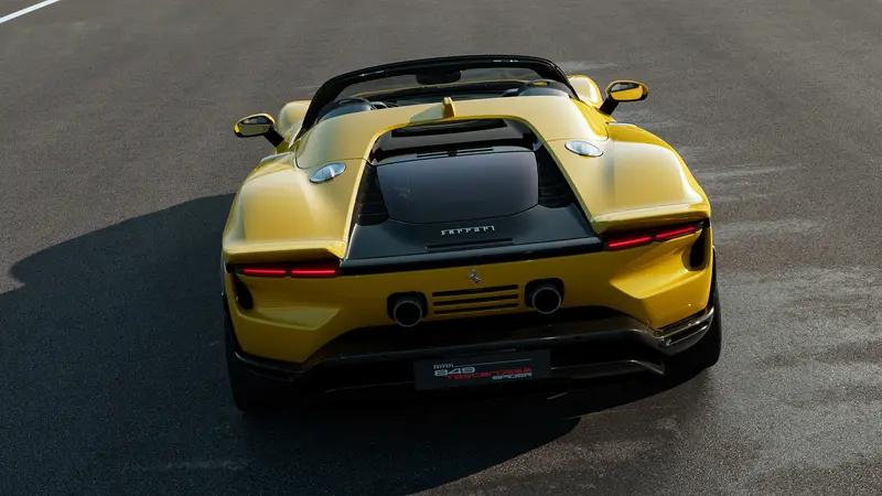 新车尾部采用了源自法拉利512S的双尾翼结构,两个扰流板(即双尾翼)利用流经充满肌肉感的后轮拱罩顶部的强大气流,为车尾提供了10%的下压力。