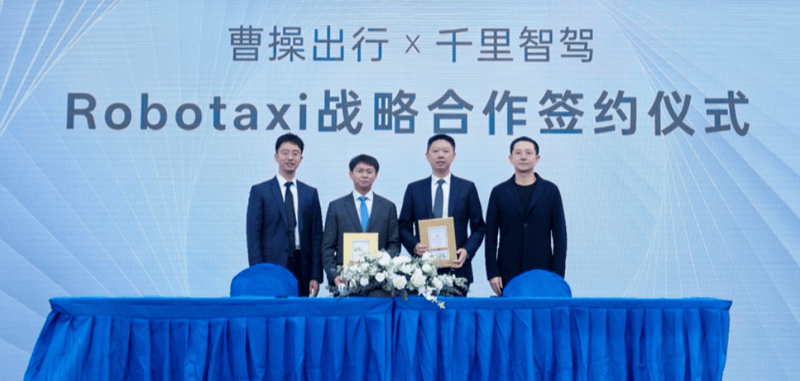发布会现场,在曹操出行CEO龚昕与千里科技董事长印奇的见证下,曹操出行和千里智驾签署战略合作协议。依托吉利控股强大的科技生态赋能,双方将深化在Robotaxi领域的合作,共同加速智能驾驶技术的规模化应用与商业化落地。