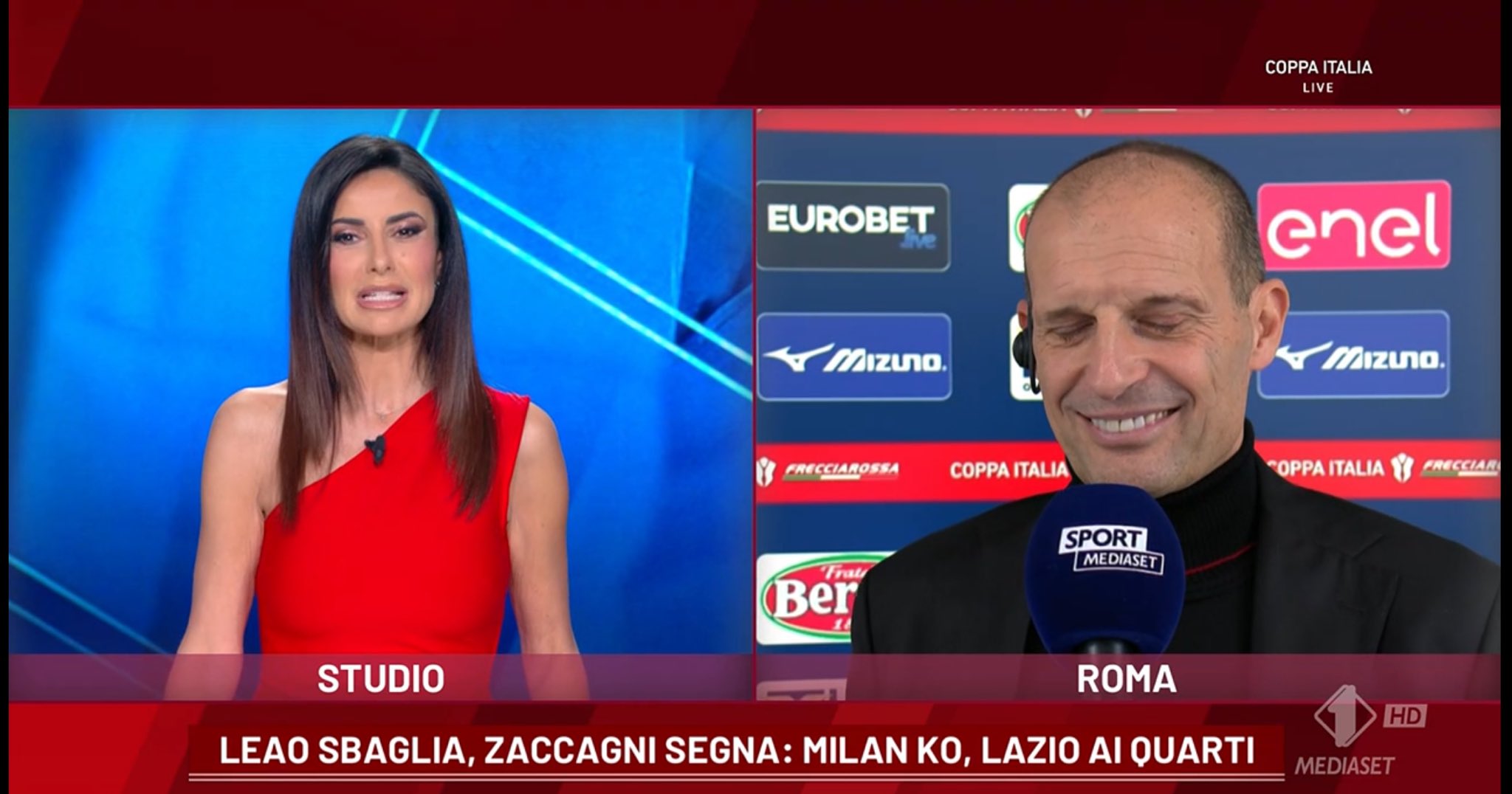 虎扑12月05日讯AC米兰在意大利杯1/8决赛客场0-1负于拉齐奥被淘汰出局,赛后米兰主教练阿莱格里也接受了转播商慢镜头电视台的采访。