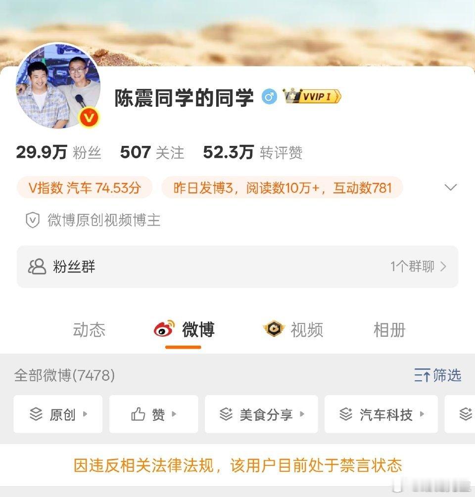 陈震老师不但大号被全网禁言,连小号也被追加禁言了,事似乎情有点严重了,搞不好要“