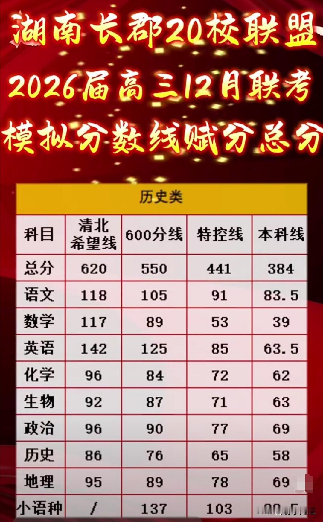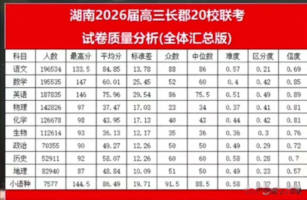 湖南省2025年12月1 - 2日高三长郡20校联考划线情况。 此次联考有320多所学校参与联评,参考人数约20.4万,其中物理方向14.8万,历史方向5.6万。 此次联考整体难度较大,对于正进行高考第一轮复习的考生而言,是一次查漏补缺的好机会。