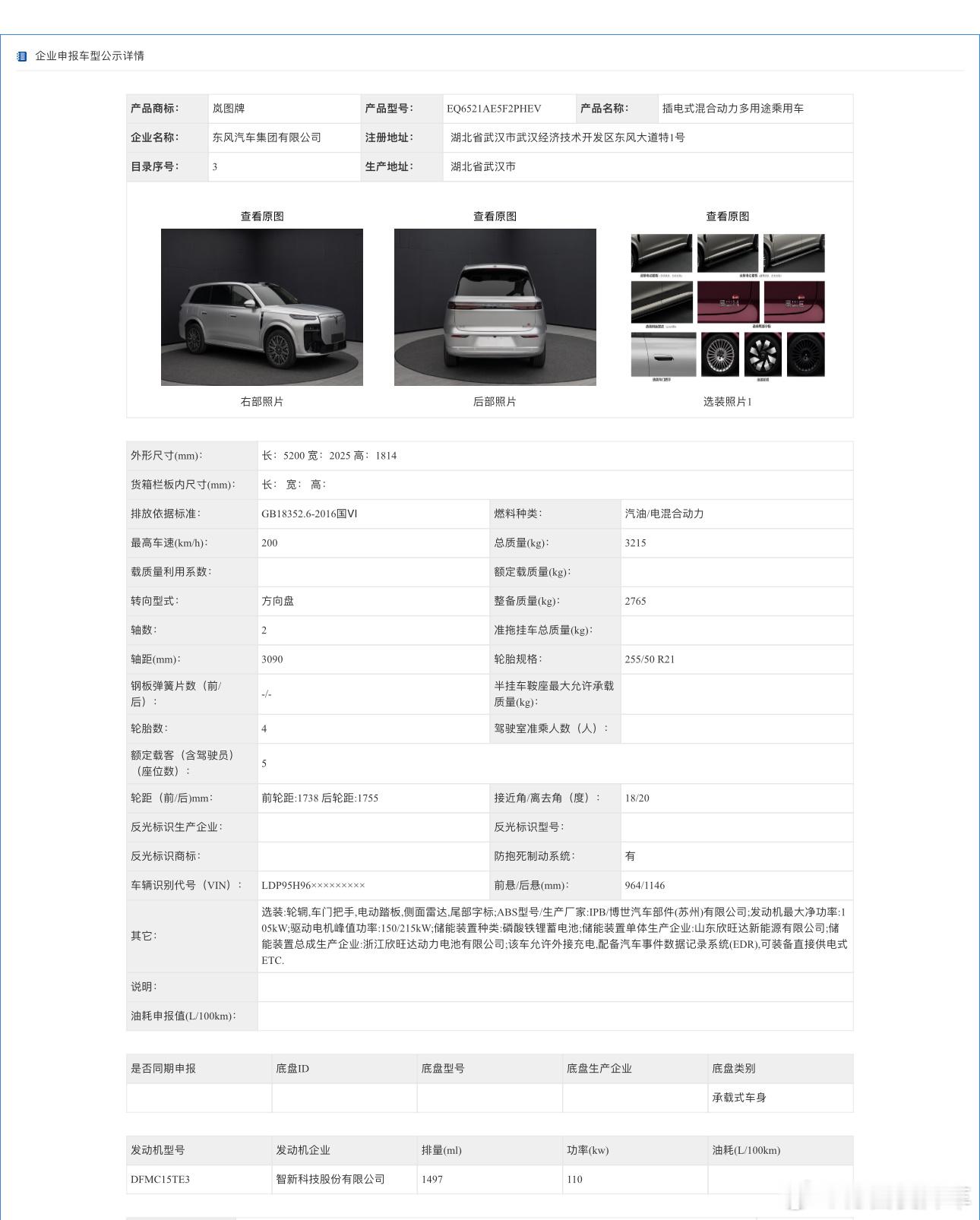 岚图泰山8申报,平台化车型布局,岚图这节奏挺快,估计还有泰山 7 ?岚图泰山8
