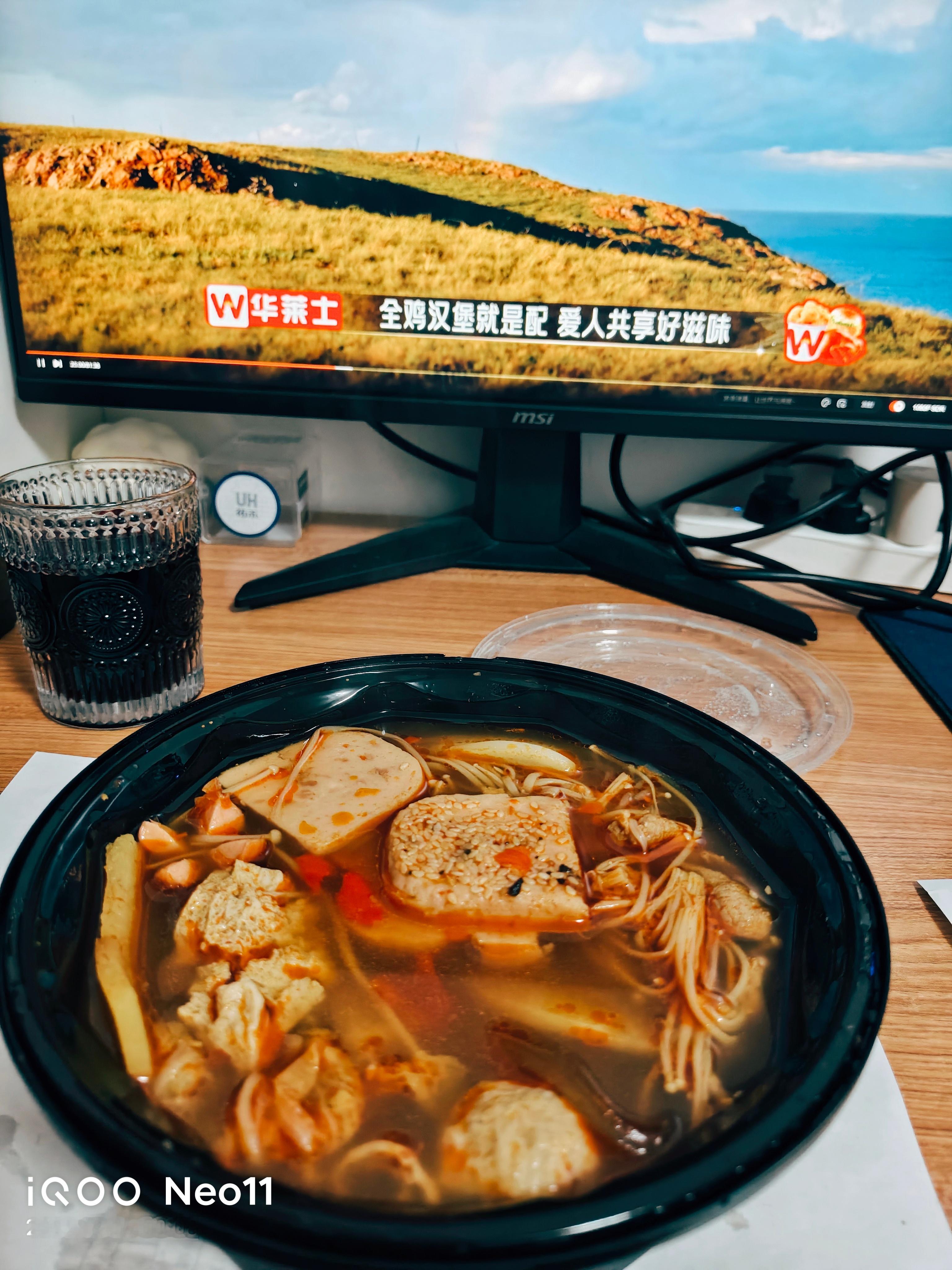 海底捞老早就出了麻辣烫,今天高低尝尝咸淡。选的经典汤底,整体感觉不咸,带微微的辣。最后,猜猜什么综艺在下饭?iqooiQOONeo11