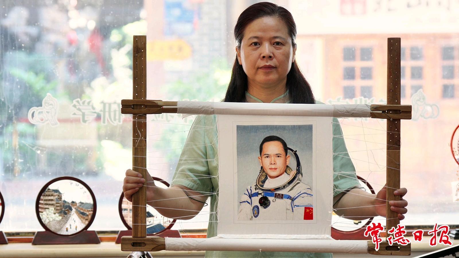 在罗明华看来,桃源刺绣背后所蕴含的专注、坚持与精益求精的工匠精神,正与航天员张陆所代表的坚韧执着、追求卓越的品质相契合。“这种精神上的共鸣,深深打动了我,也成为创作的动力。”她说。