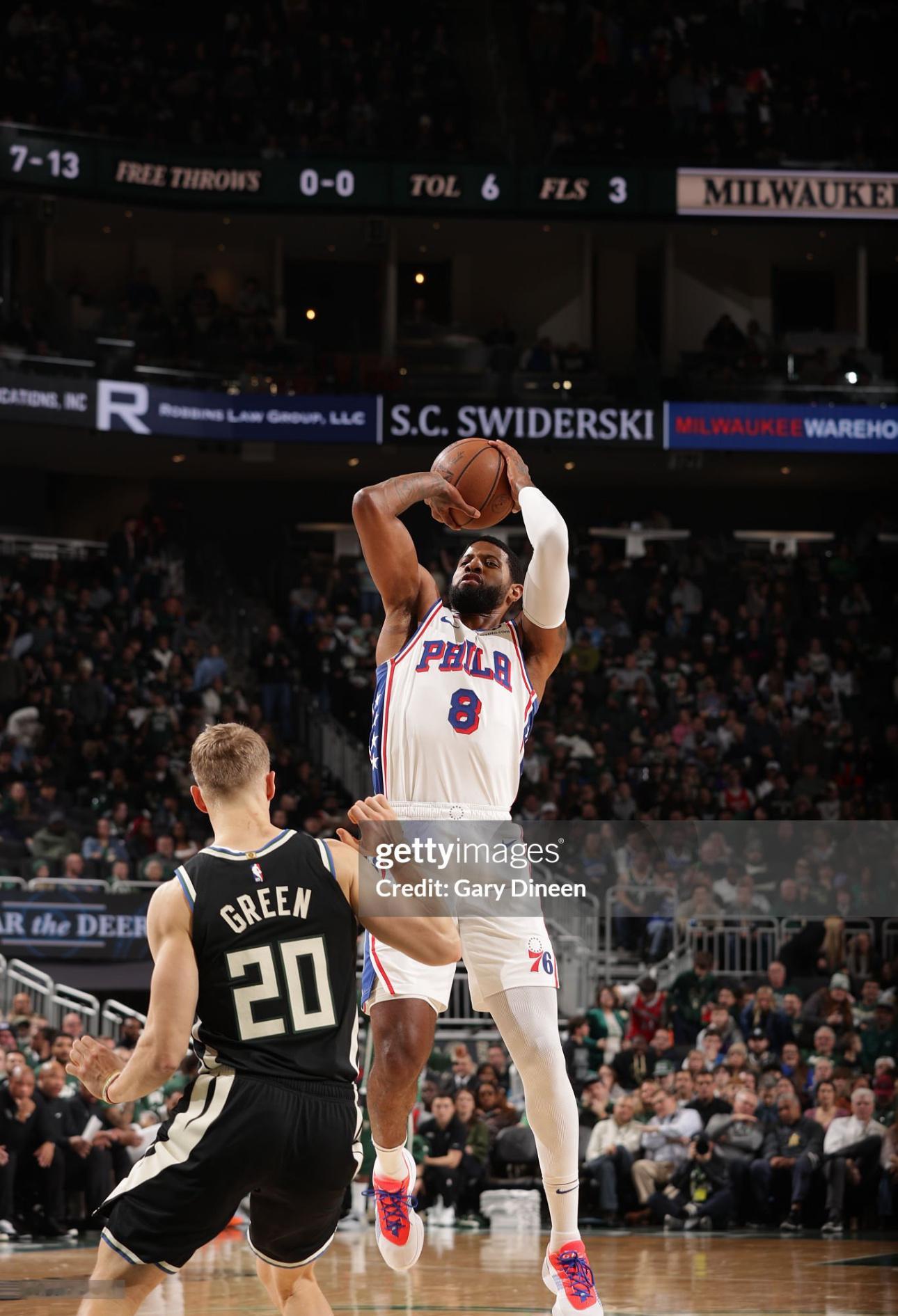 全场比赛结束:76人队背靠背客场116-101战胜雄鹿队,球队取得三连胜!状态回暖!乔治今日上场近30分钟,15投7中,三分6中2,罚球4中4,得到20分5篮板5助攻1抢断,『0失误』,正负值+7!新赛季篮不住76人vs雄鹿PaulGeorge保罗乔治