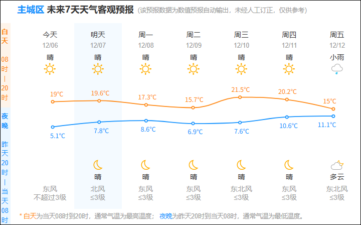展望下周天气,在12日前,杭州将持续维持“又晴又暖”的宜人天气。其间仅8-9日会出现一次小幅气温下降,其余时段最高气温均稳定在19~20℃区间。
