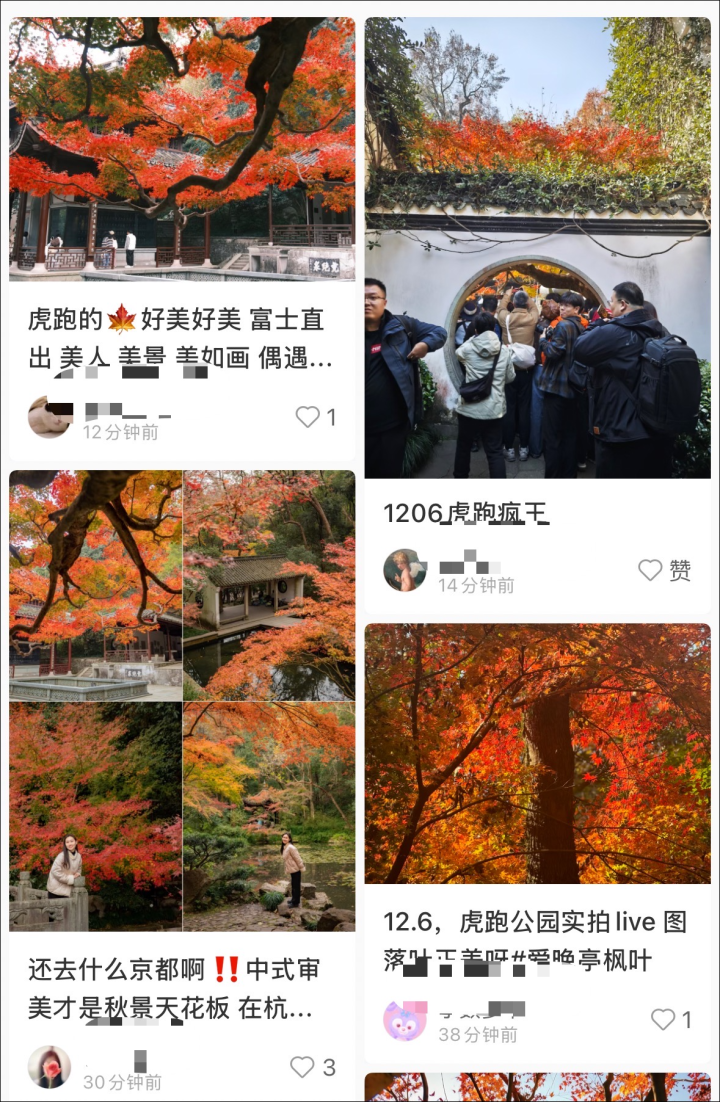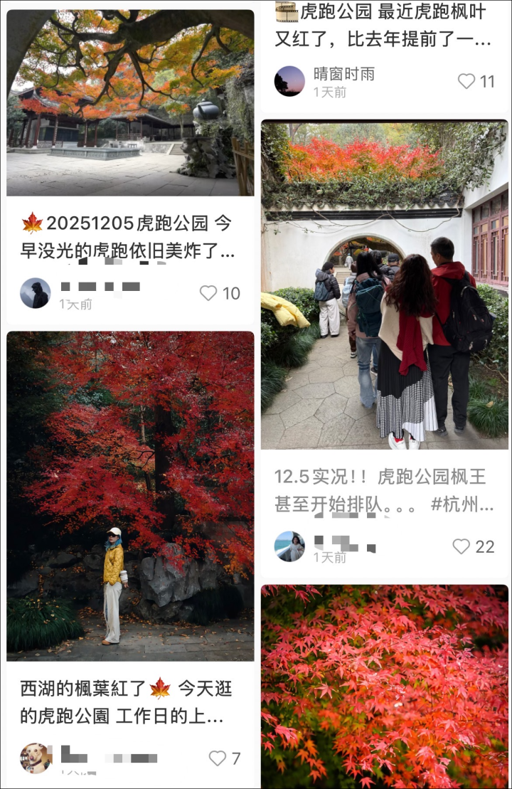 西湖周边、运河等地美丽的枫树还有很多,不用人挤人,到处走走看看都能发现美景。