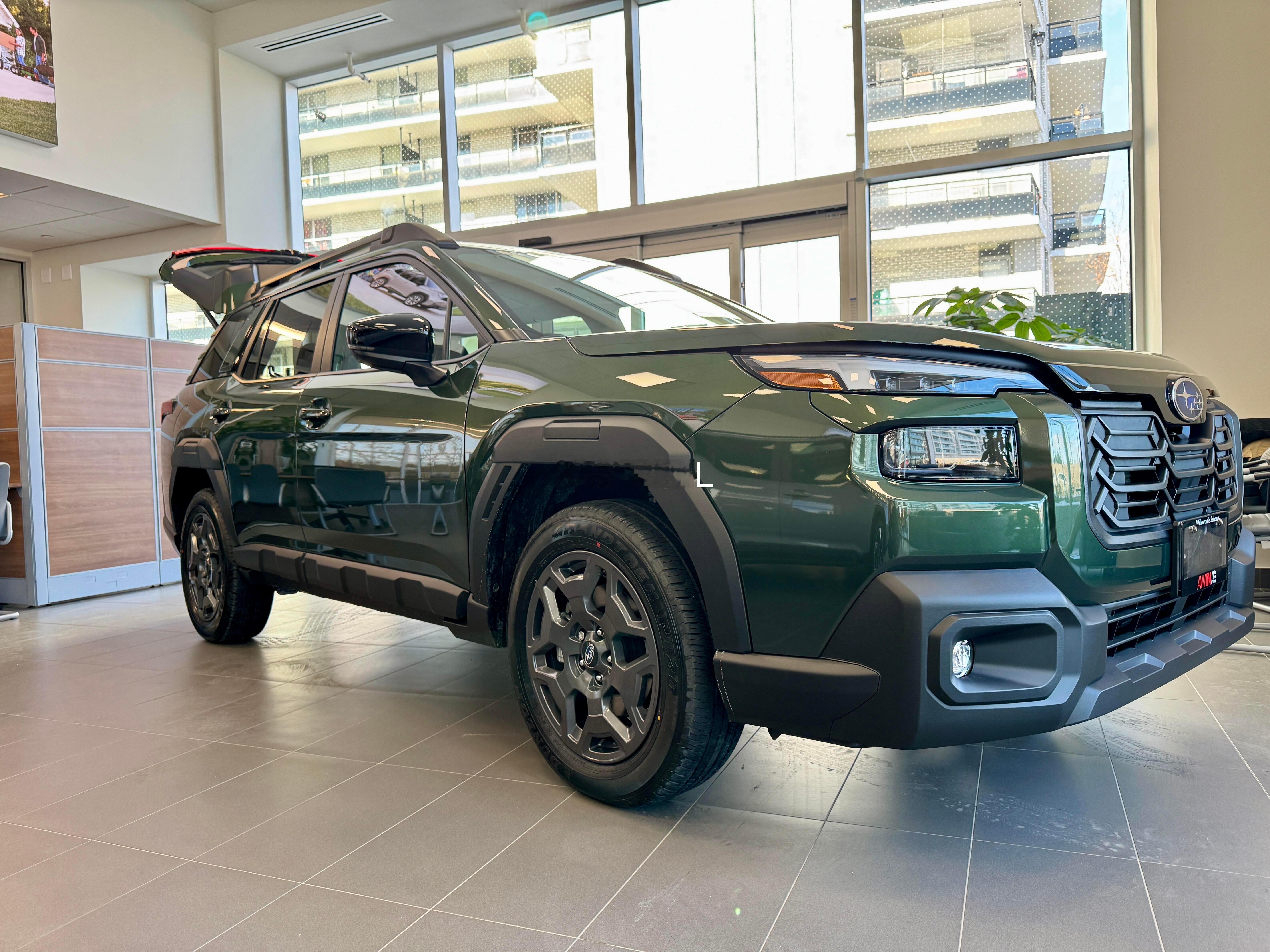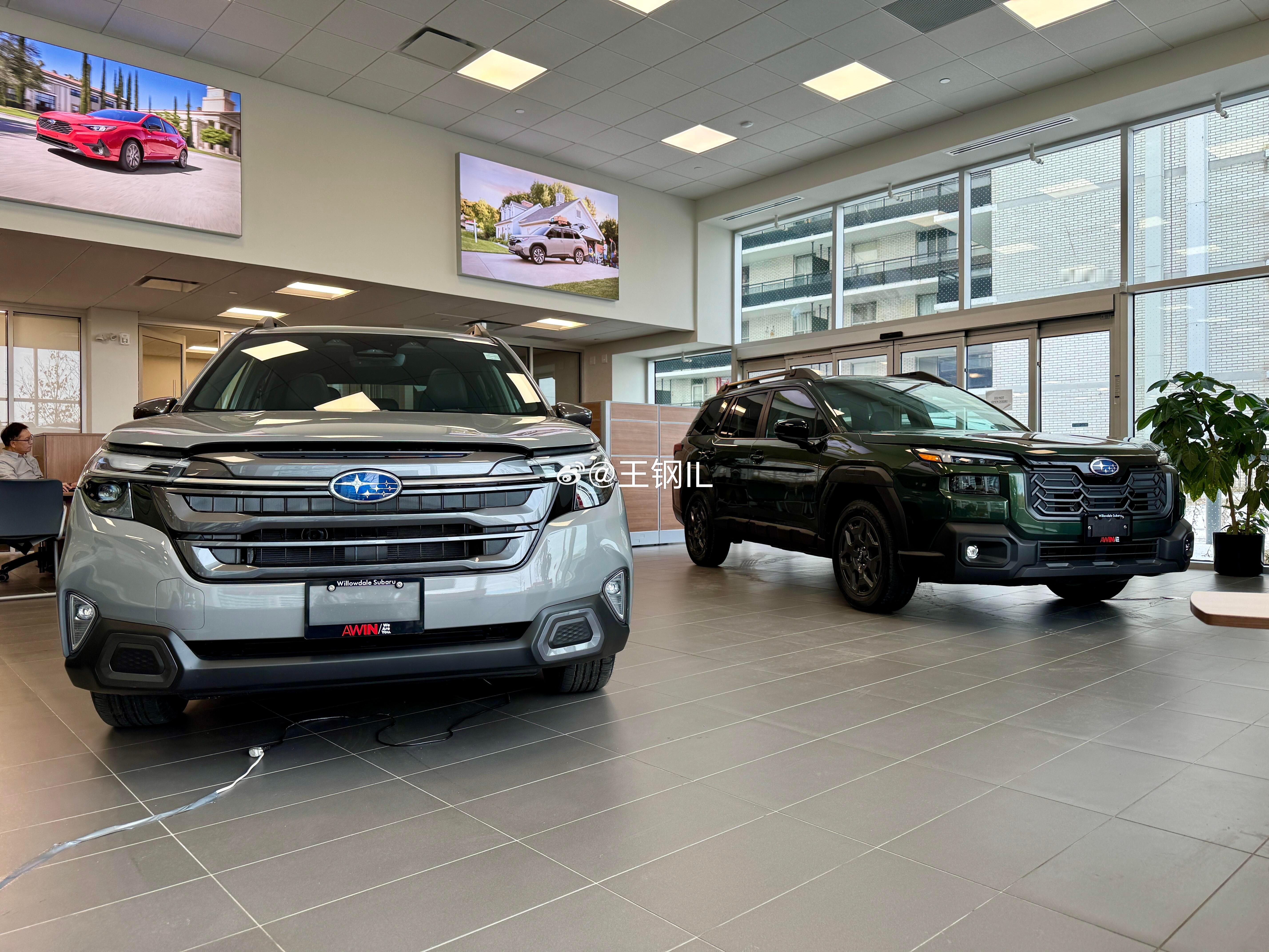 今年改款鳌拜的新颜色-翠绿色,放在森林人旁边对比感觉鳌拜更加的硬朗,对比上代的话新改款鳌拜空间更大,开起来更加舒服。斯巴鲁