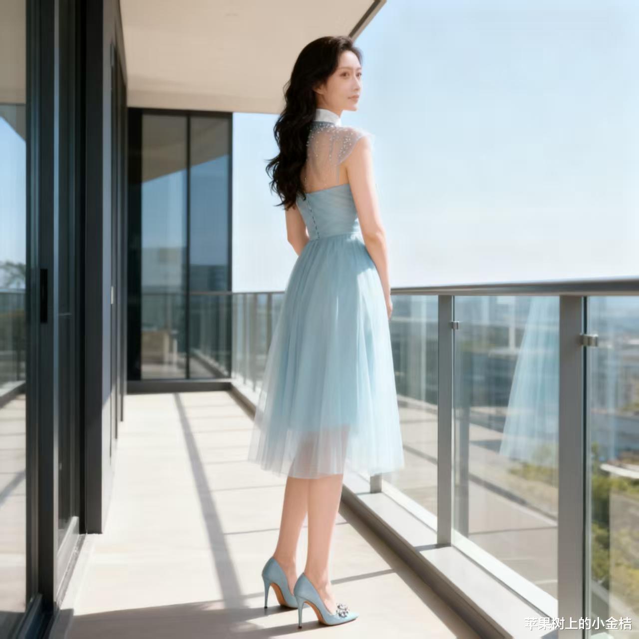 轻奢精致感,优雅大气,天蓝色温柔气质长裙。