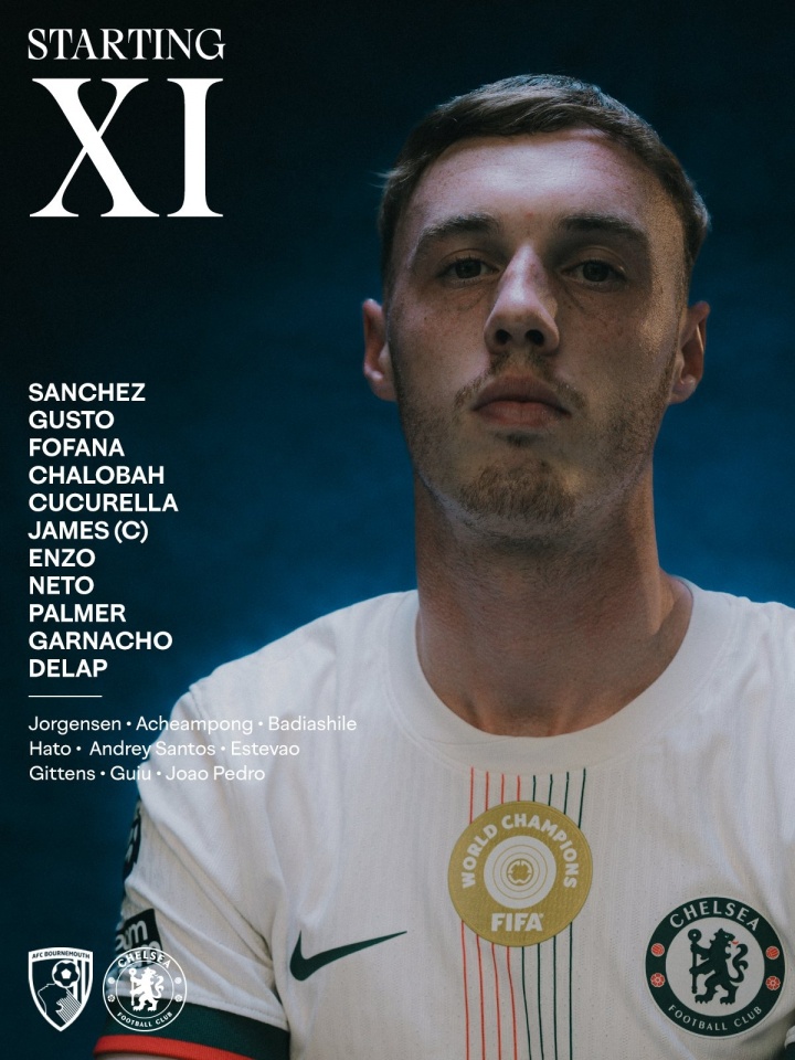 直播吧12月06日讯北京时间今晚23点,英超第15轮,切尔西客场对阵伯恩茅斯,赛前双方公布首发阵容。