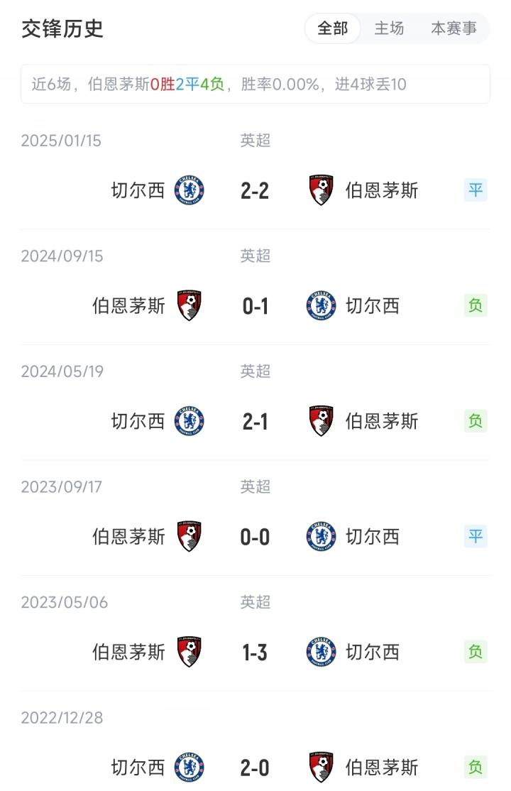 截至赛前,切尔西7胜3平4负积24分,排名英超积分榜第4;伯恩茅斯5胜4平5负积19分,排名英超积分榜第14。