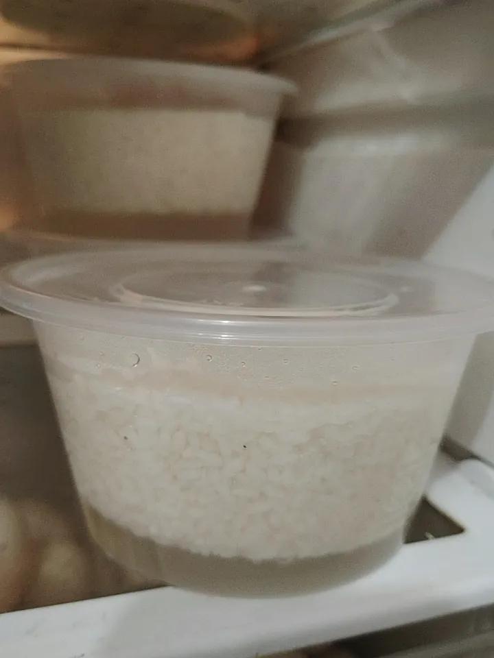 我今天终于给醪糟汤里加了凉白开,1:0.75,干米1,凉白开0.75。我喜欢吃醪糟,而且想拿出去摆摊,但味道始终都不确定,有时酸味重,有酒味重。我当然想要甜味重的,这个配方一直没找到。家人一直嘲笑我,人家做的甜米酒都酒水多,你做得干巴巴的,丑死人,谁喜欢?我一直强调,醪糟是甜米酒的幼小阶段,这个时候偏向吃米粒。家人说喝甜米酒还不是一样吃米粒?今天的醪糟好象酸味重一点,加了凉白开,放冰箱观察,看过段时间甜味能不能压住酸味?主打一个边吃边观察吧!