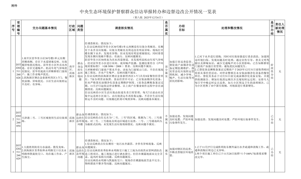 按照中央第二生态环境保护督察组工作要求,12月6日,我区已完成对交办的第八批9件群众信访举报件的调查处理,目前已办结2件,阶段性办结7件。