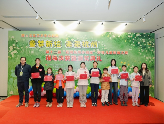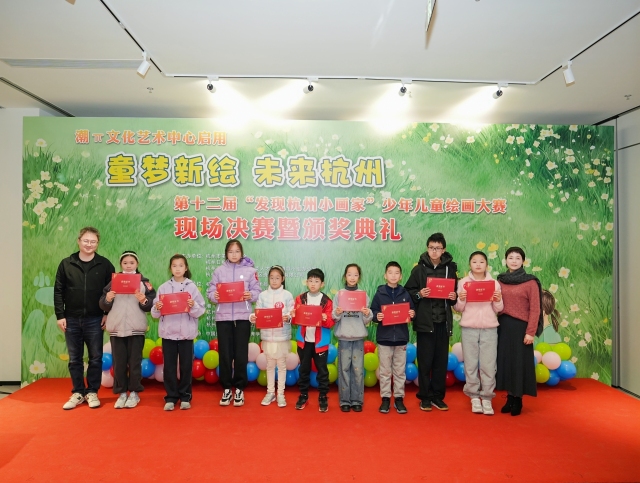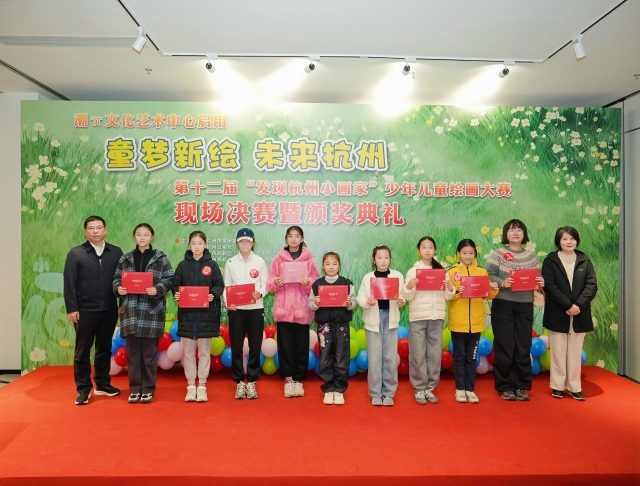 同日,第十二届“发现杭州小画家”少年儿童绘画大赛颁奖典礼在此举行。百名从征稿中脱颖而出的少年儿童用画笔与色彩,共同诠释了“童梦新绘·未来杭州”的无限遐想。