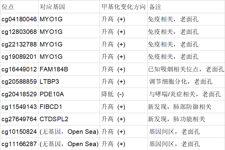 在本次研究发现的11个受损位点中,有4个都集中在同一个基因上——MYO1G。这是目前已知与吸烟暴露关联最紧密的基因之一。