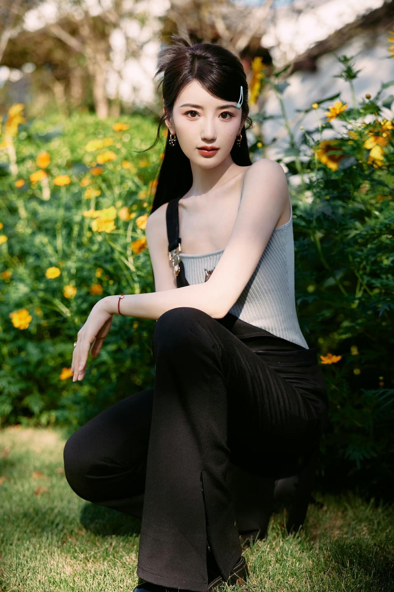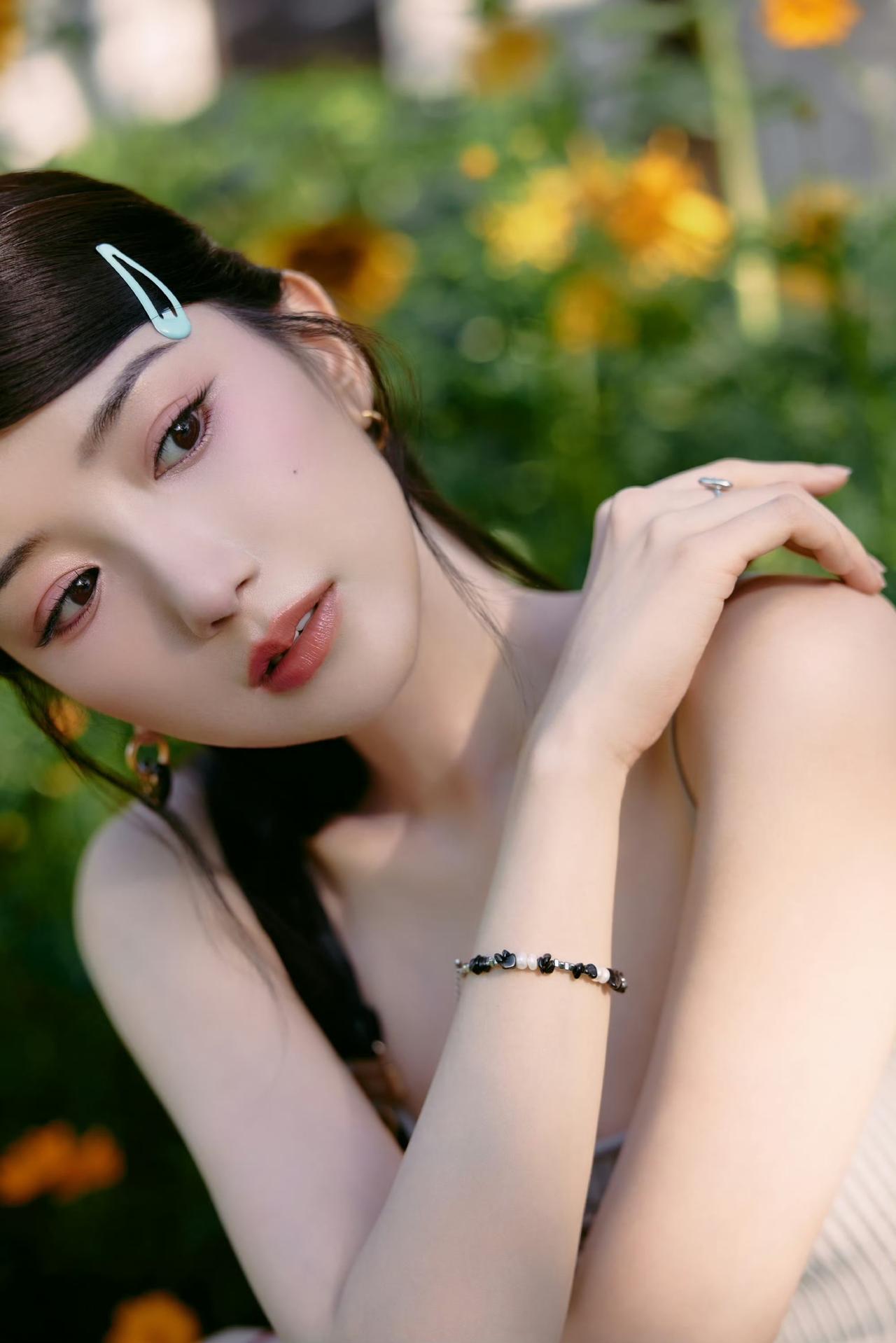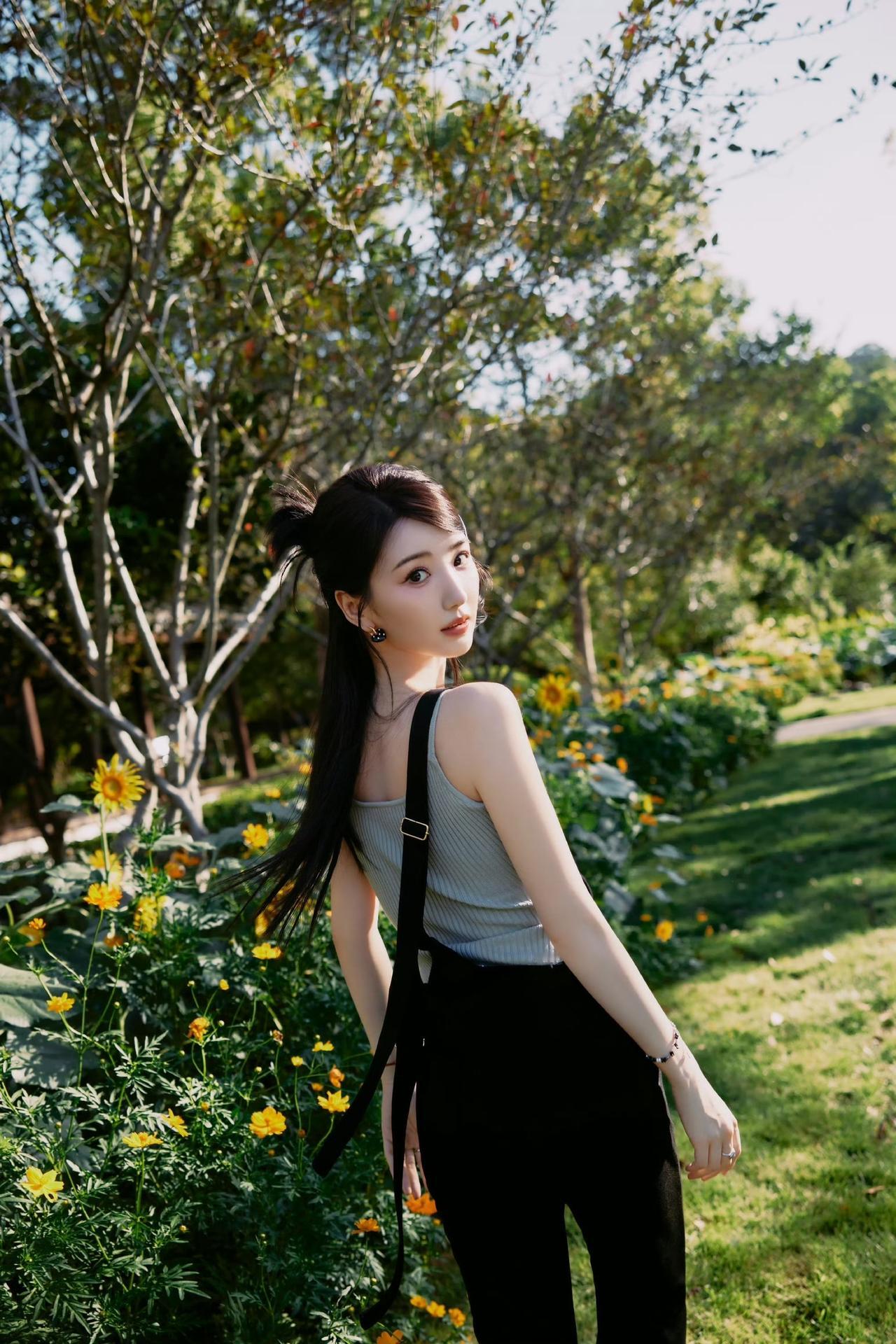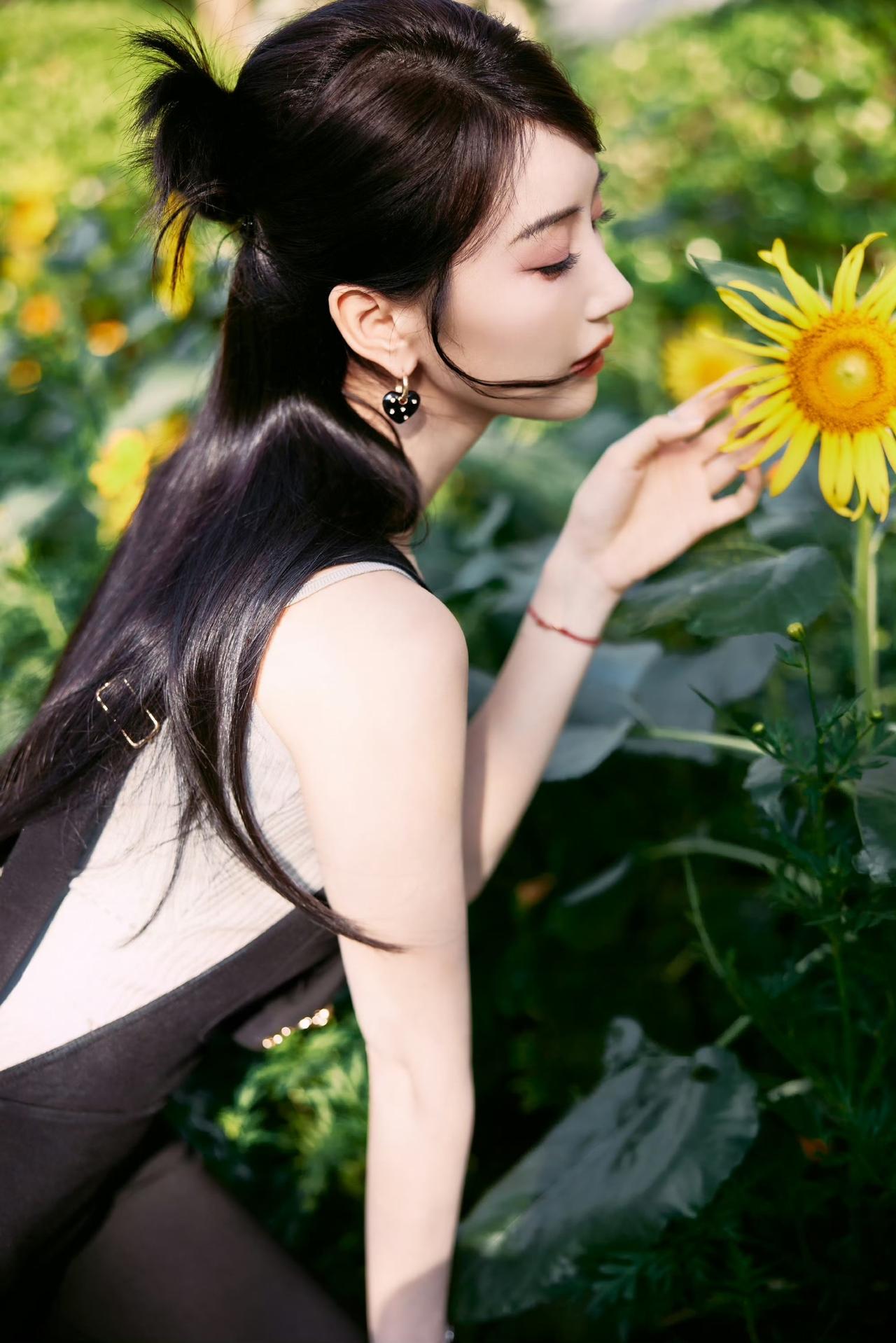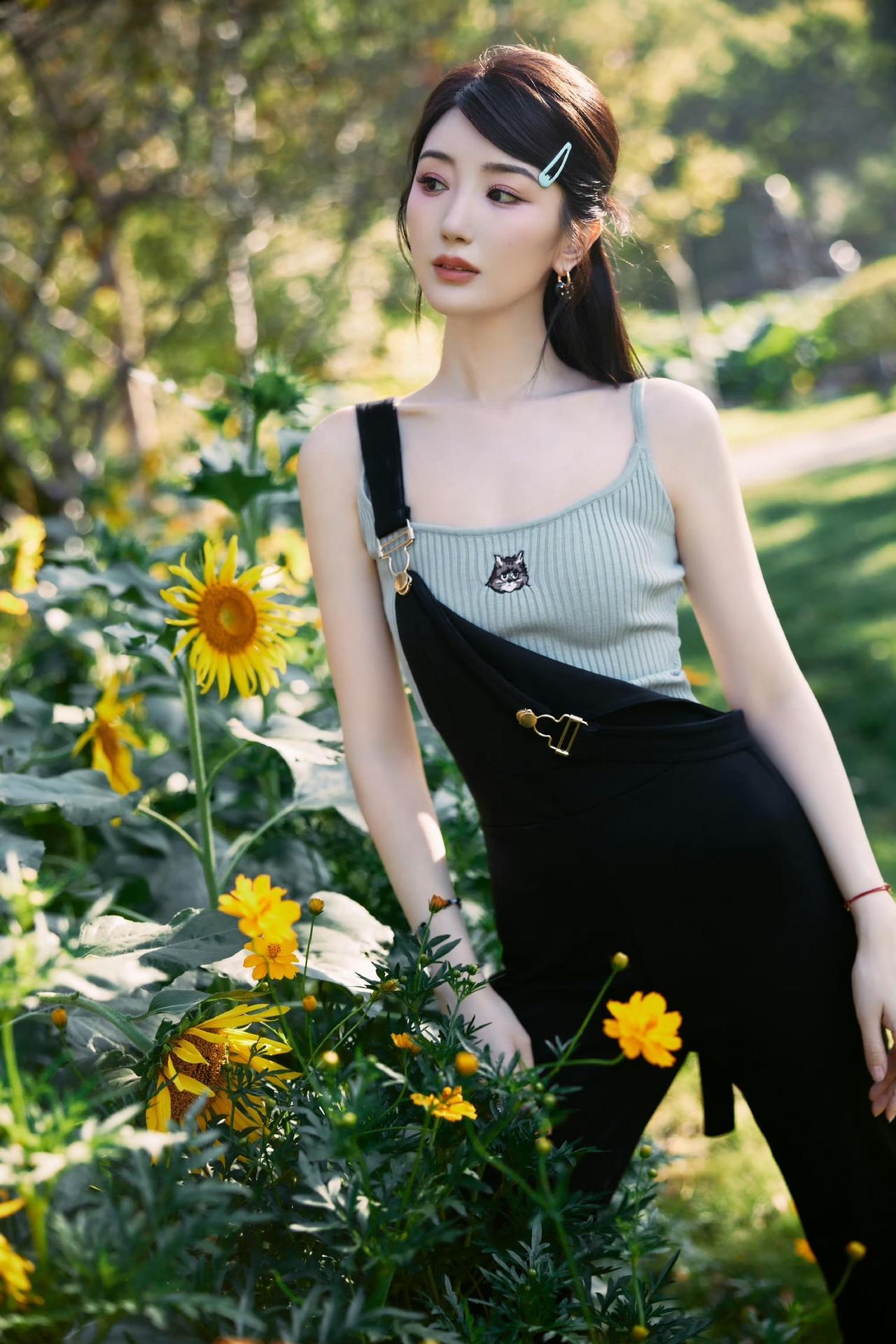 阳光下的花田,温柔少女与向日葵的浪漫邂逅。毛晓彤!!!