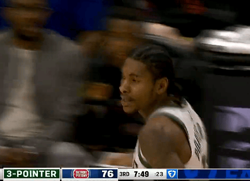 NBA常规赛,活塞对阵雄鹿的比赛正在进行中。