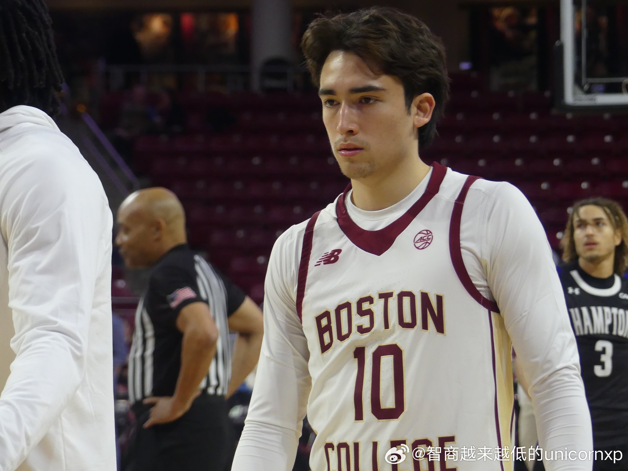 近期表现出色的波士顿学院日本控卫泰福斯-流河大学生涯首获先发机会,出场21分钟得到12分1板2助NCAA亚洲篮球