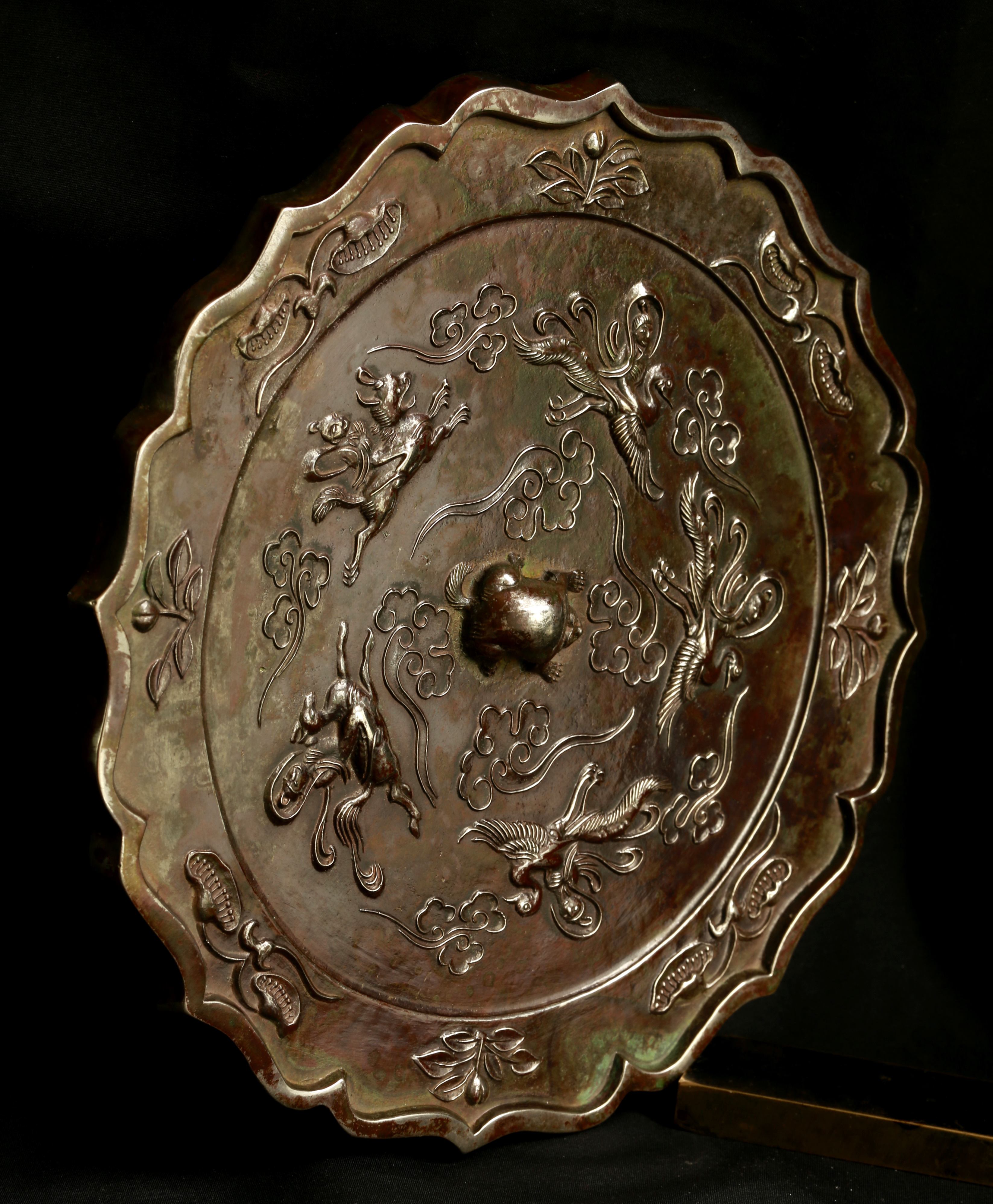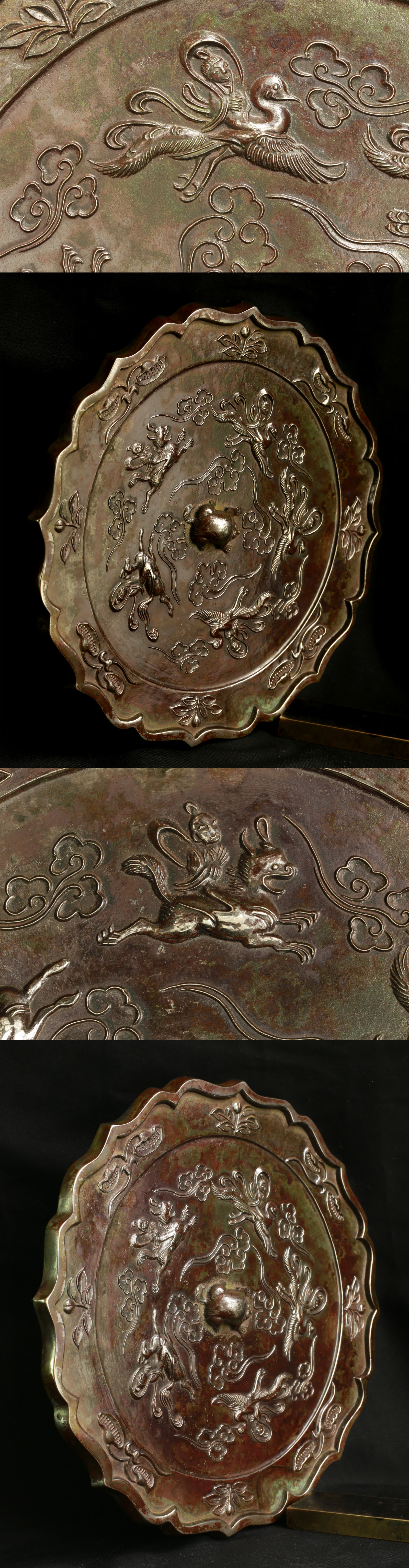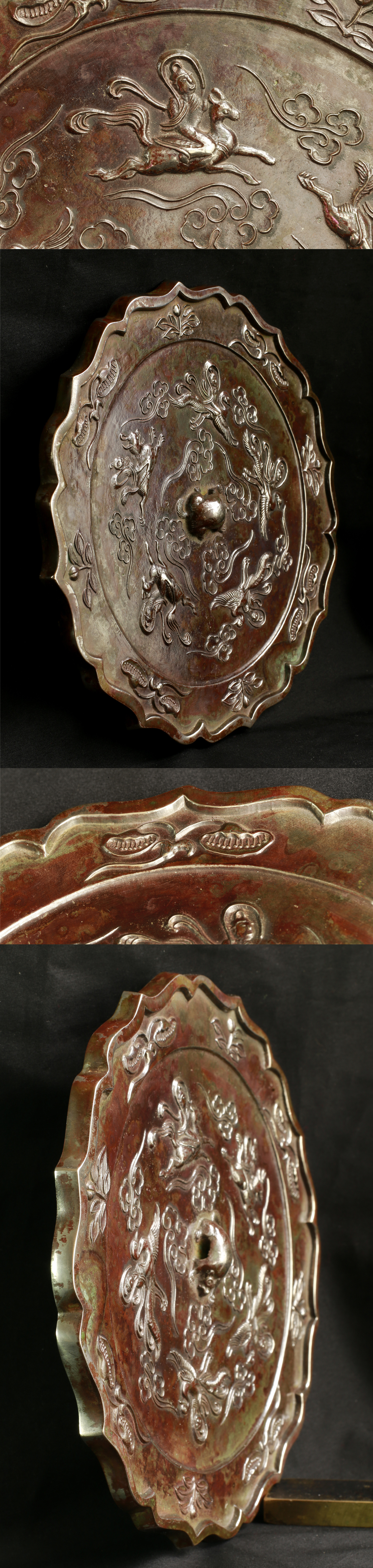 唐 . 头版头模神仙飞升纹葵花青铜镜一面尺寸:镜直径192mm,镜厚7.7mm,