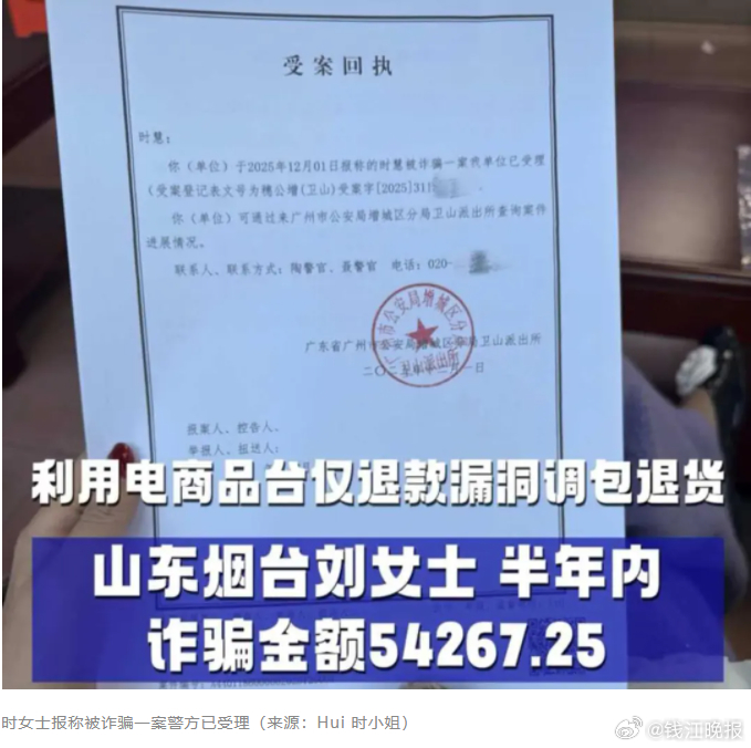 【半年仅退款225个快递女子曾打造富婆人设,发朋友圈称“你们搬砖我搬钱”,败露后求卖家“留条路”】#仅退款225个快递女子打造富婆人设# 商家时女士日前在社交媒体发视频称,半年来她被山东烟台买家刘某利用平台漏洞,用6个账号“仅退款”225件331单,还在网上打造富婆人设销售所得财物,她因此损失5.4万余元,目前已报案。6日,有律师告诉记者,刘某已构成诈骗。#律师称仅退款225个快递构成诈骗# 6日下午,极目新闻记者联系上时女士。她说,这个买家刘某每次会在店铺购买多样商品,商品价格从十几元到几百上千元不等,然后在快递还未签收时,将贵价商品申请仅退款“拦截快递”,再将低价商品的面单与贵价商品交换,把低价商品当成贵价商品退回。时女士怀疑刘某是采用热吹风机不停的吹面单,然后打开两个快递调换货品。因为仓库一般不会检查被拦截的快递,近期这个买家没有将面单贴好,露出破绽她们才发现问题。时女士说,她事后了解到,刘某将骗来的物品在二手平台和粉丝群内低价销售,给顾客排单发货,营造供不应求的氛围。还经常在粉丝群里炫富,营造富婆人设。有网友向时女士提供的截图显示,2020年,刘某曾经发朋友圈称:“你们都在搬砖,我在搬人民币,都是一袋子一袋子给,这两天光安排人存钱了!”“我不接受任何道歉,一切交给警方处理!”时女士说,事发后,刘某并未认识到这是违法犯罪行为,分别两次转账一次2万元,一次3万元,并留言再核算一下,不够再转,欲补齐差价。还称自己老公去世,带着个小孩子,希望能给留条路。时女士展示的受案回执显示,她12月1日报称的上述被诈骗案,广州市公安局增城区分局卫山派出所已受理。河南泽槿律师事务所主任付建认为,上述女子刘某以非法占有为目的,利用平台和快递漏洞,通过仅退款、互换面单换货等手段,从一开始就无支付等价的意图,并且虚构退货理由等事实,转卖所得赃物,使得平台仅退款,致使商家遭受重大损失,符合诈骗罪构成要件。(极目新闻)