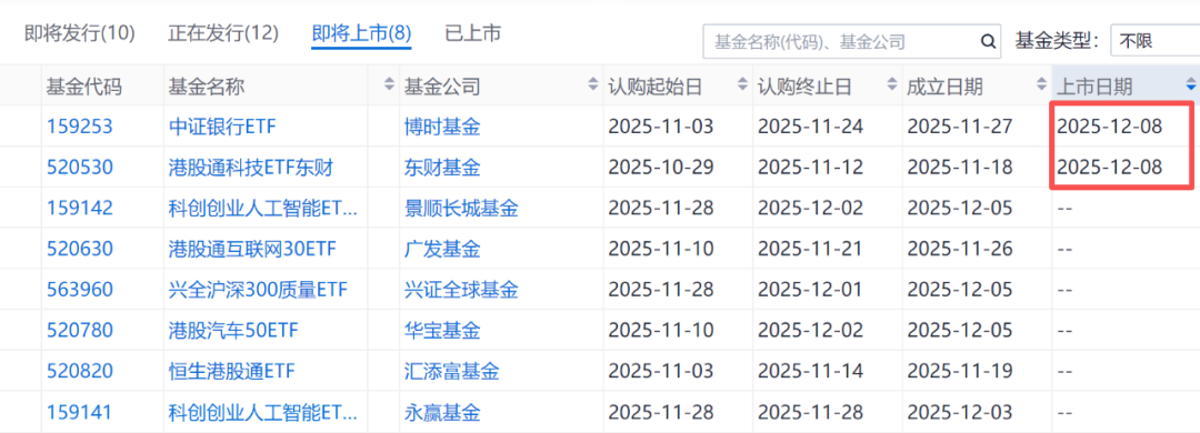 ETF上市方面,下周将有2只ETF上市,分别是博时基金的中证银行ETF和东财基金的港股通科技ETF东财。