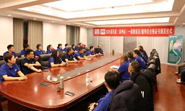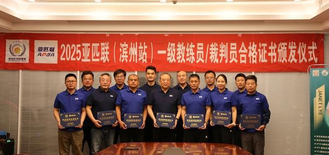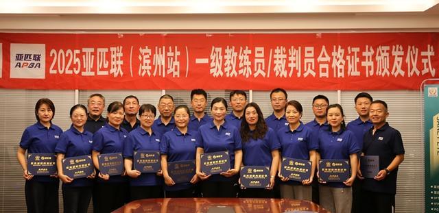 滨州日报/滨州网讯12月7日上午,2025亚匹联(滨州站)一级教练员/裁判员合格证书颁发仪式在滨州乒乓球馆会议室举行。中国老体协乒乓球专委会主任、亚太匹克球联盟荣誉会长、原副市长于志刚,亚太匹克球联盟副会长、亚匹联(滨州)中心竞赛部部长李志飞等参加活动。