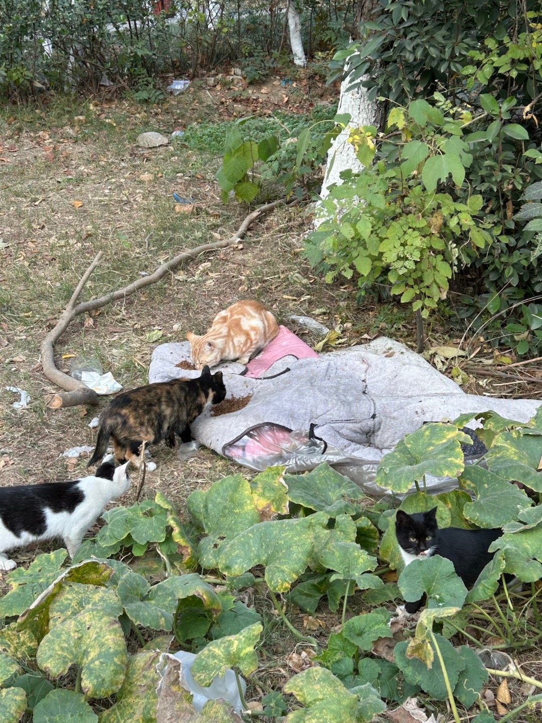 昨天偶遇到,买了四根肠喂了四只猫,今天特意带了猫粮来喂,小流浪们明显没有昨天怕人