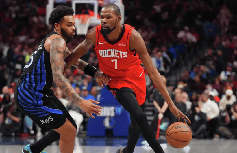 本场比赛,火箭球员凯文-杜兰特出战31分钟,20投11中,其中三分球3投1中,罚球4投4中,得到27分1篮板3助攻。