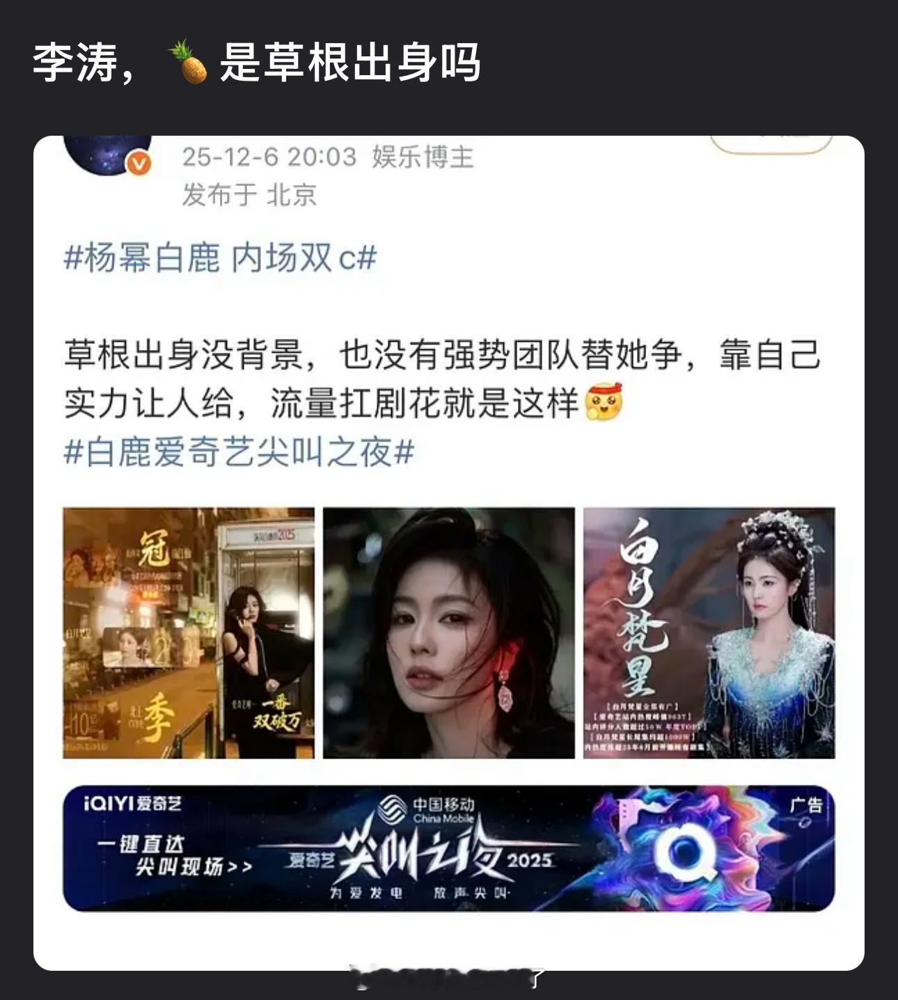 大家感觉白鹿是草根出身吗?