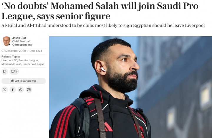 《电讯报》指出,鉴于萨拉赫夏天刚与利物浦续约,并且曾与沙特联洽谈过自由转会的可能,因此他一月不太可能在没有支付高额转会费的情况下离队。2023年9月,吉达联合曾1.5亿镑报价萨拉赫,遭到拒绝。