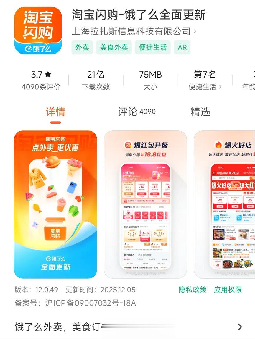 这则消息并不令人感到意外。事实上早在上个月初,就有市场消息传出,称饿了么将更新为淘宝闪购,当时是处于灰度测试阶段,仅对部分用户开放体验。