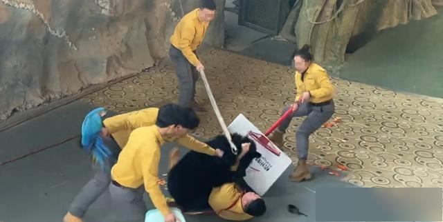 视频画面显示,在杭州野生动物园内,一只黑熊在结束表演后突然袭击驯养员,驯养员和黑熊扭打在一起,另一位动物驯养员见状后上前制止,视频发出后引发广泛关注。