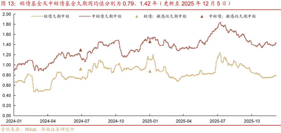 中短债基金久期开始拉长,短债基金久期延续升势。其中,中短债基金久期周均值由前一周的1.38年拉伸至1.42年。短债基金久期中枢则由前一周的0.76年升至0.79年。