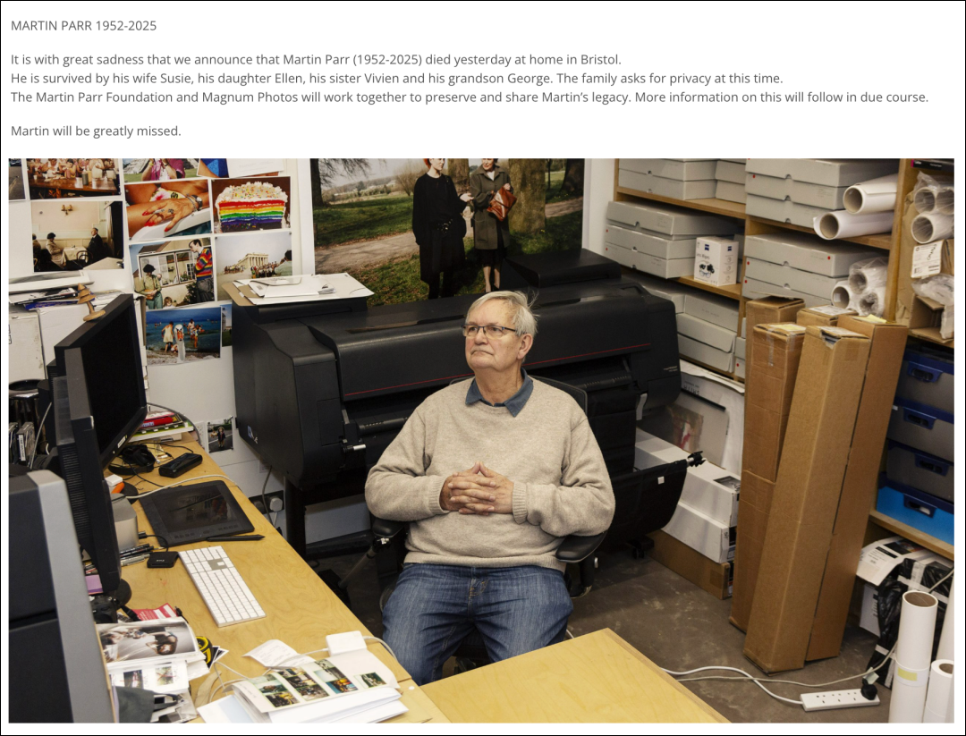 据MartinParr工作室消息,著名摄影师马丁·帕尔,于2025年12月6日在英国布里斯托尔家中去世,享年73岁。