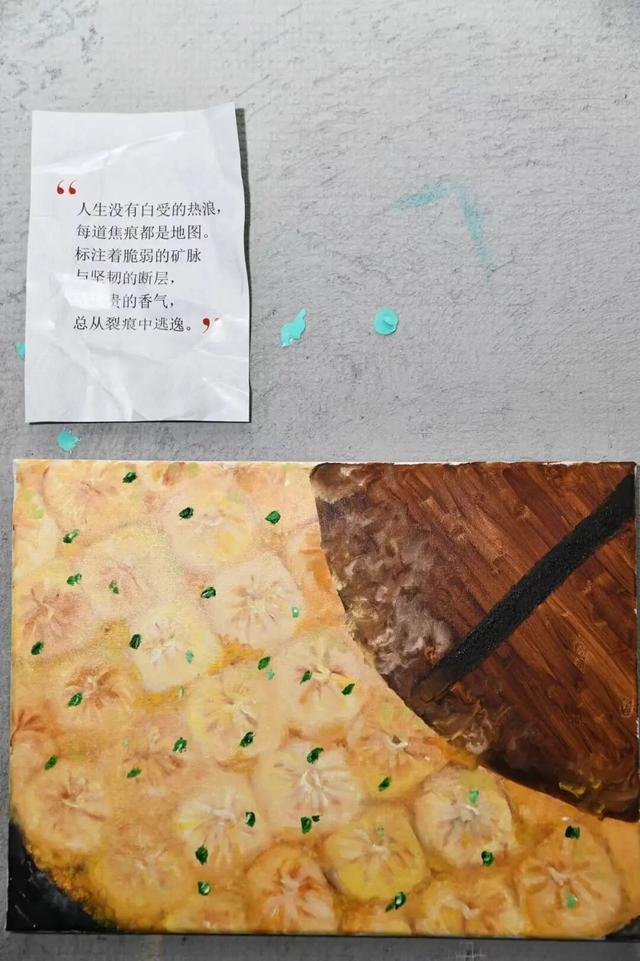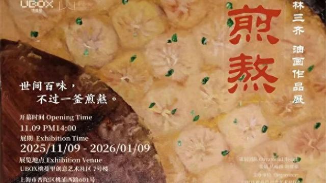 一客生煎、一碗菜肉馄饨,这些看似平凡的美食里,藏着老城厢的温情与海派文化的独特韵味,蕴含了上海人最深沉的烟火情怀。近日,普陀UBOX桃蔓里艺术社区就迎来了这样一场冒着锅气的油画作品展——《煎熬》。