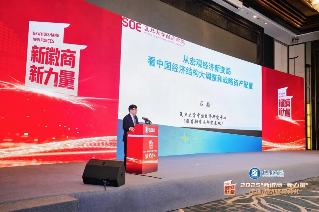 除了荣耀加冕,本届典礼更致力于智慧的碰撞与未来的前瞻。在当天下午举行的“2025徽商高质量发展分享会”上,复旦大学经济学院教授石磊以“从宏观经济新变局看中国经济结构大调整和战略资产配置”为题深度剖析了宏观经济发展趋势。