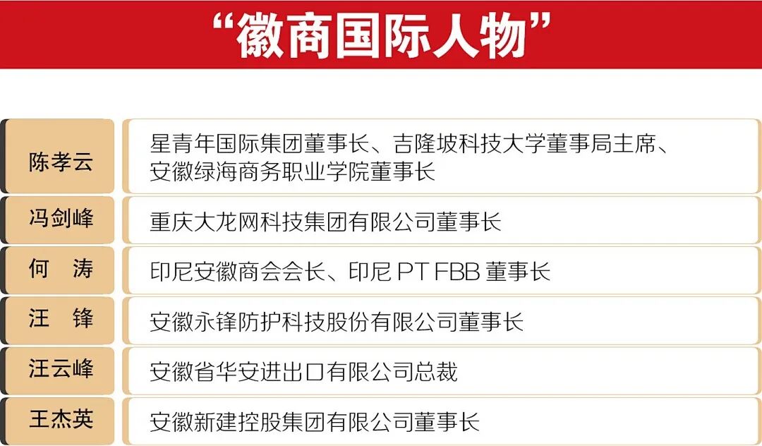 在安徽开放发展的征程中,徽商始终走在前沿,令这块金字招牌在异国海港、空港、工商界同步点亮,在国内国际双循环之间高速架桥,在全球产业链中占有“关键席位”,“徽商国际人物”的设定便是让世界看见徽商,让安徽制造直达世界舞台。